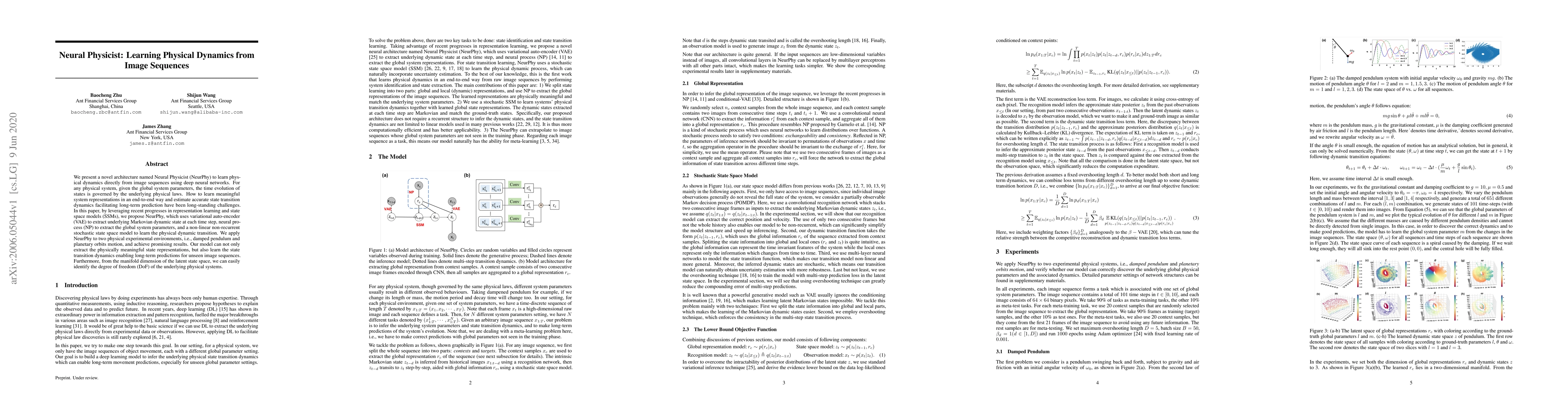 A new AI model called Neural Physicist learns physical dynamics from image sequences, predicting future states with high accuracy, and can even identify the number of degrees of freedom in a system.
