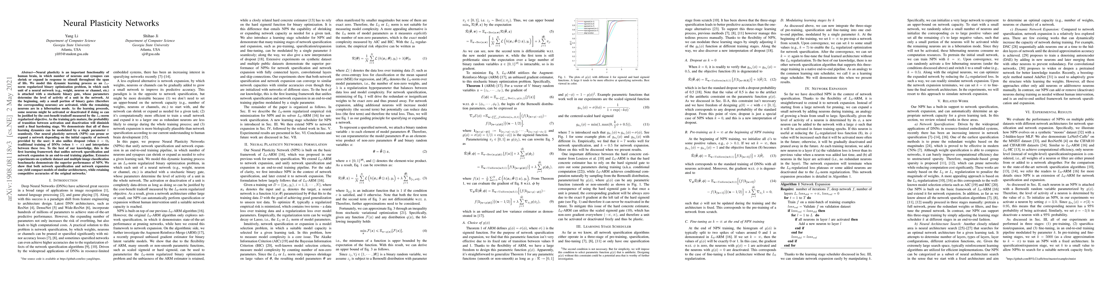Researchers propose a neural network framework called Neural Plasticity Networks (NPN) that can prune or expand networks based on user-provided initial capacity, offering a unified approach to sparse and dense training.