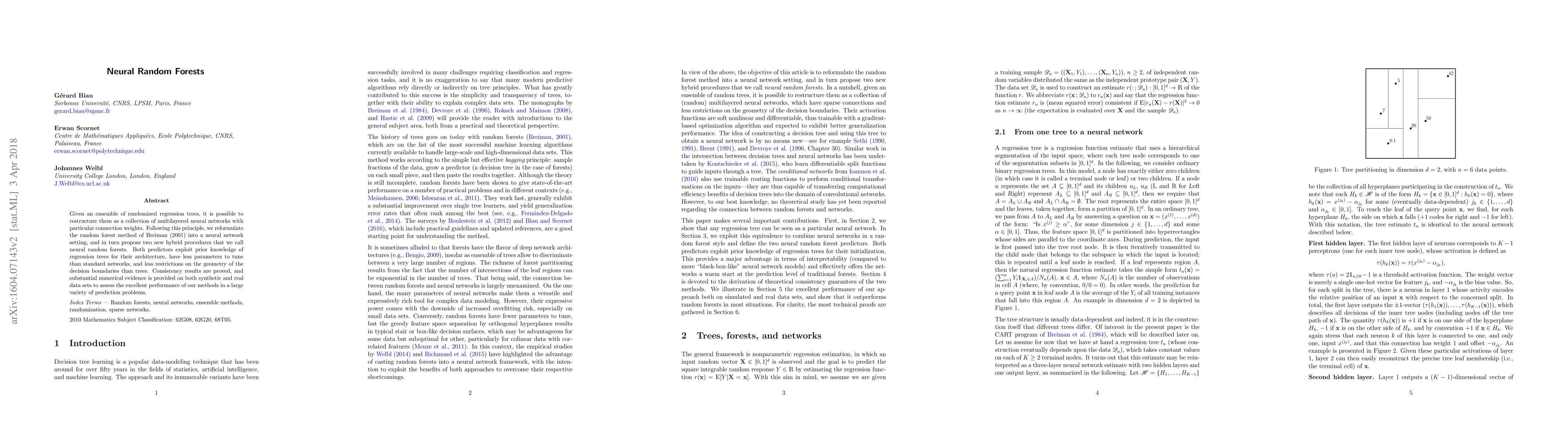 This paper reformulates the random forest method into a neural network framework, proposing two new hybrid neural random forests. These methods leverage the structure of regression trees, resulting in fewer parameters and more flexible decision boundaries compared to standard neural networks.