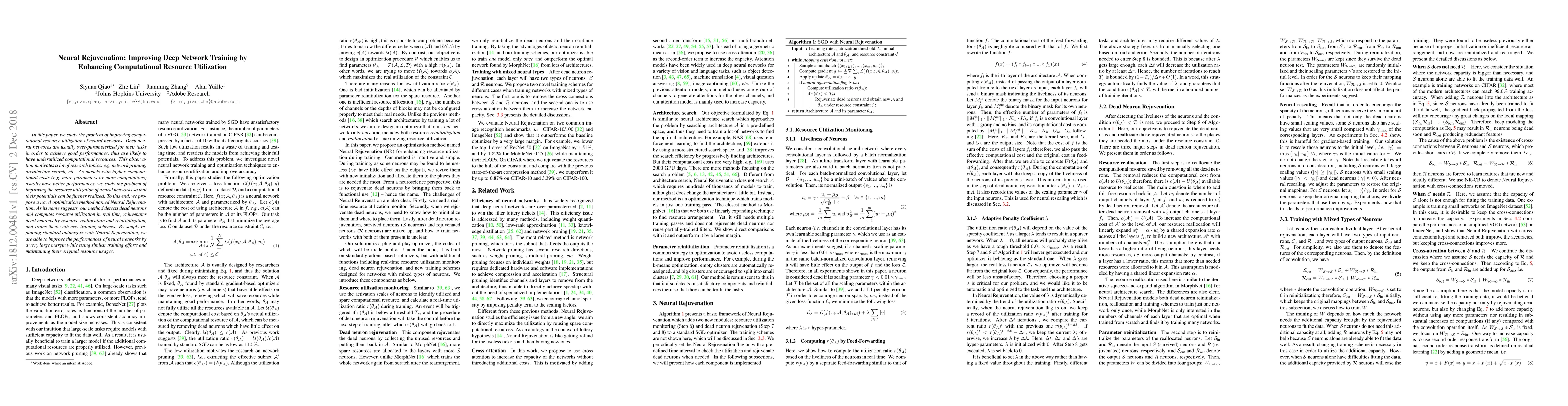 This paper proposes Neural Rejuvenation, a novel optimization method to enhance computational resource utilization in deep neural networks by detecting and rejuvenating dead neurons through real-time resource reallocation and reinitialization, significantly improving performance with minimal additional training effort.