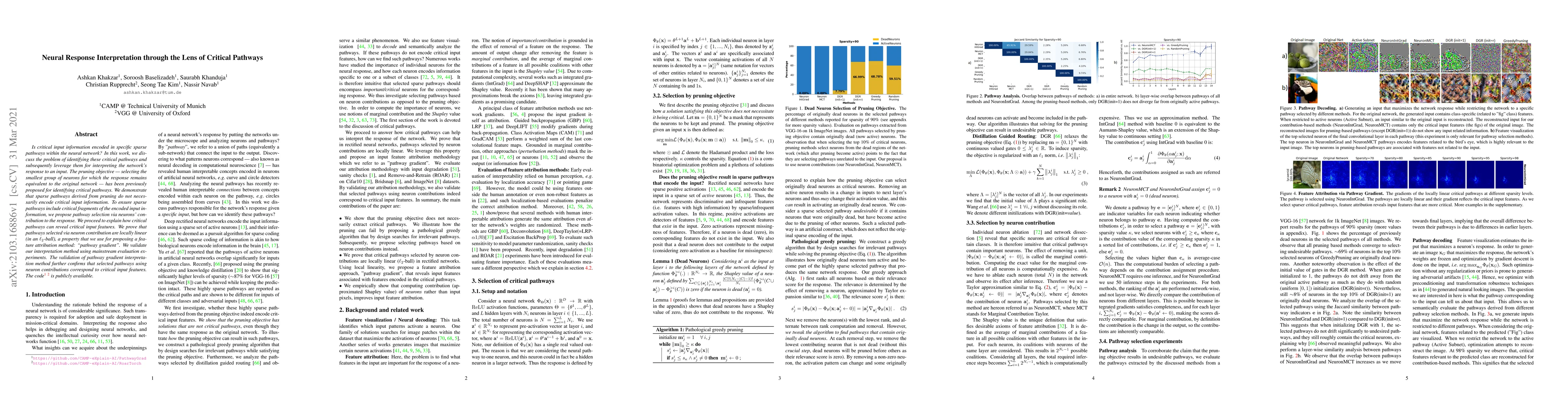 Is critical input information encoded in specific sparse pathways within the neural network? In this work, we discuss the problem of identifying these critical pathways and subsequently leverage them for interpreting the network's response to an input. The pruning objective -- selecting the smallest group of neurons for which the response remains equivalent to the original network -- has been previously proposed for identifying critical pathways. We demonstrate that sparse pathways derived from pruning do not necessarily encode critical input information. To ensure sparse pathways include critical fragments of the encoded input information, we propose pathway selection via neurons' contribution to the response. We proceed to explain how critical pathways can reveal critical input features. We prove that pathways selected via neuron contribution are locally linear (in an L2-ball), a property that we use for proposing a feature attribution method: "pathway gradient". We validate our interpretation method using mainstream evaluation experiments. The validation of pathway gradient interpretation method further confirms that selected pathways using neuron contributions correspond to critical input features. The code is publicly available.