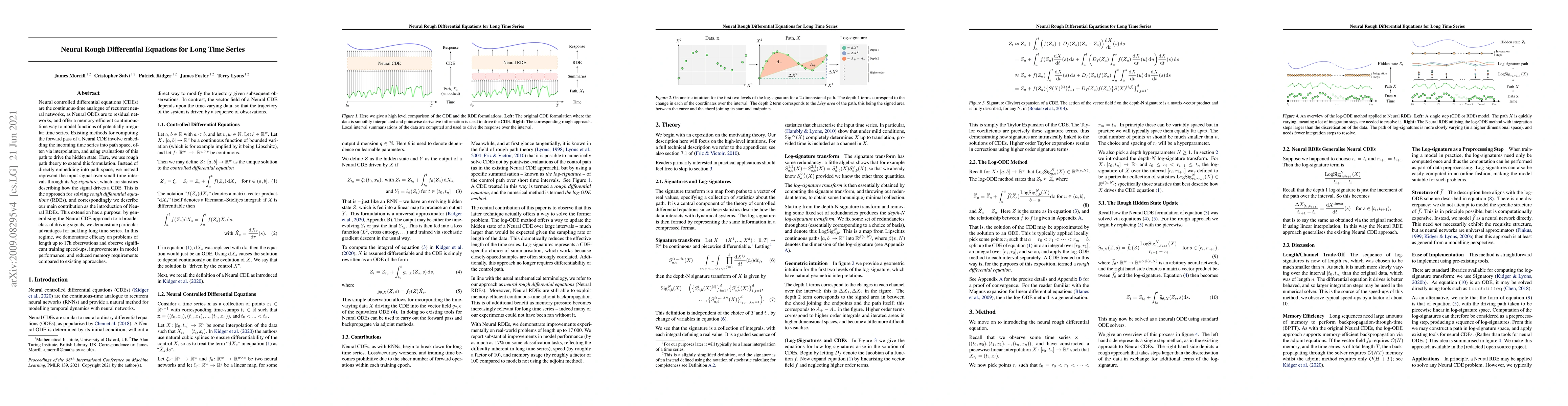 This paper introduces Neural Rough Differential Equations (Neural RDEs) to model long time series efficiently. It leverages rough path theory to represent input signals via log-signatures, offering memory-efficient and faster training compared to traditional Neural Controlled Differential Equations (Neural CDEs).