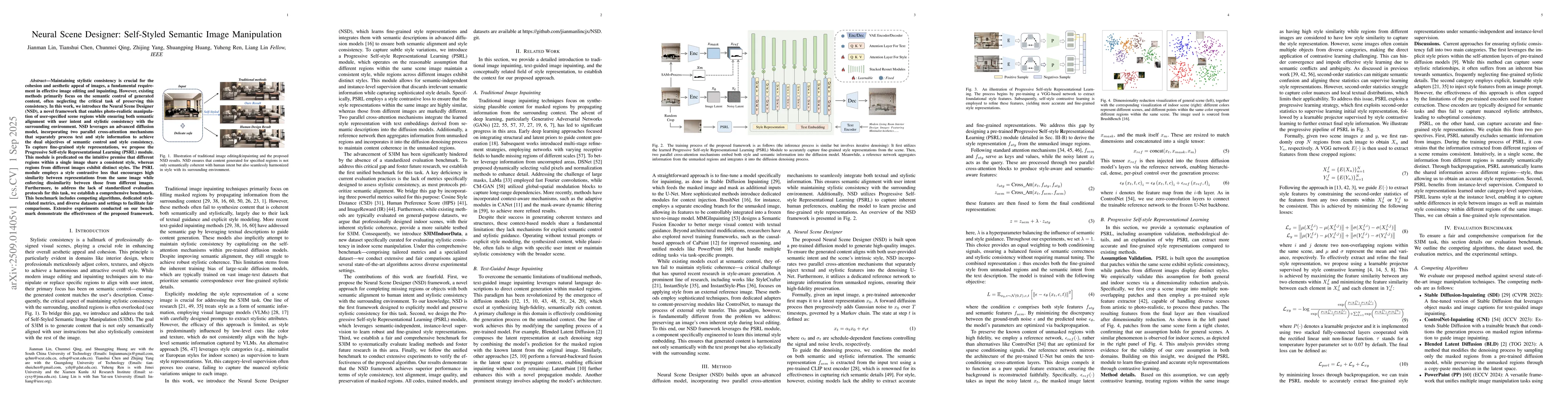 Maintaining stylistic consistency is crucial for the cohesion and aesthetic appeal of images, a fundamental requirement in effective image editing and inpainting. However, existing methods primarily focus on the semantic control of generated content, often neglecting the critical task of preserving this consistency. In this work, we introduce the Neural Scene Designer (NSD), a novel framework that enables photo-realistic manipulation of user-specified scene regions while ensuring both semantic alignment with user intent and stylistic consistency with the surrounding environment. NSD leverages an advanced diffusion model, incorporating two parallel cross-attention mechanisms that separately process text and style information to achieve the dual objectives of semantic control and style consistency. To capture fine-grained style representations, we propose the Progressive Self-style Representational Learning (PSRL) module. This module is predicated on the intuitive premise that different regions within a single image share a consistent style, whereas regions from different images exhibit distinct styles. The PSRL module employs a style contrastive loss that encourages high similarity between representations from the same image while enforcing dissimilarity between those from different images. Furthermore, to address the lack of standardized evaluation protocols for this task, we establish a comprehensive benchmark. This benchmark includes competing algorithms, dedicated style-related metrics, and diverse datasets and settings to facilitate fair comparisons. Extensive experiments conducted on our benchmark demonstrate the effectiveness of the proposed framework.