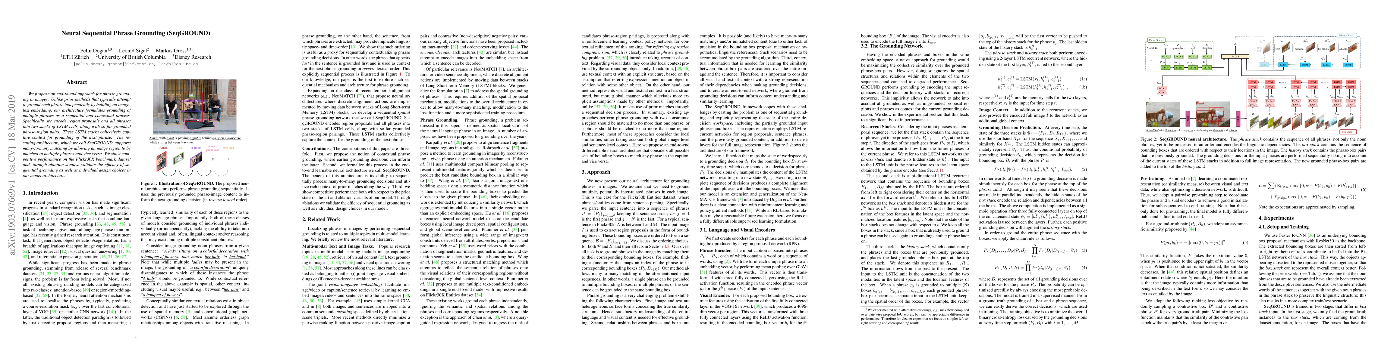 The paper introduces SeqGROUND, an end-to-end neural architecture for phrase grounding in images, which treats grounding as a sequential and contextual process using LSTM stacks. It demonstrates competitive performance on the Flickr30K dataset and validates the effectiveness of sequential grounding through ablation studies.
