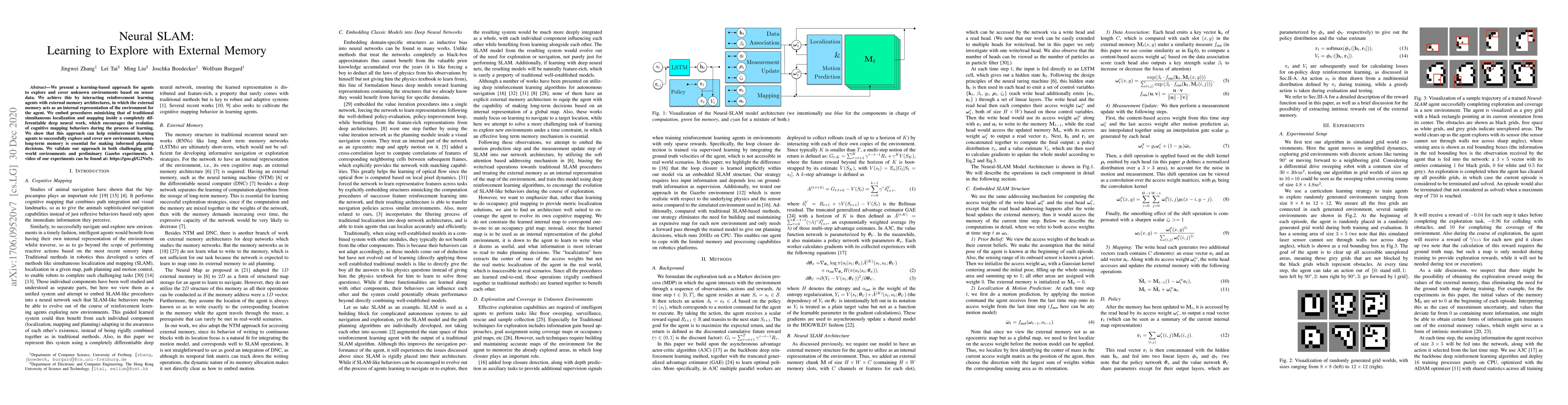 Researchers developed a method for agents to learn global maps from sensor data, enabling successful exploration in new environments with long-term memory. Their approach combines SLAM-like behaviors with external memory architectures, improving reinforcement learning performance in challenging grid-world environments and Gazebo experiments.