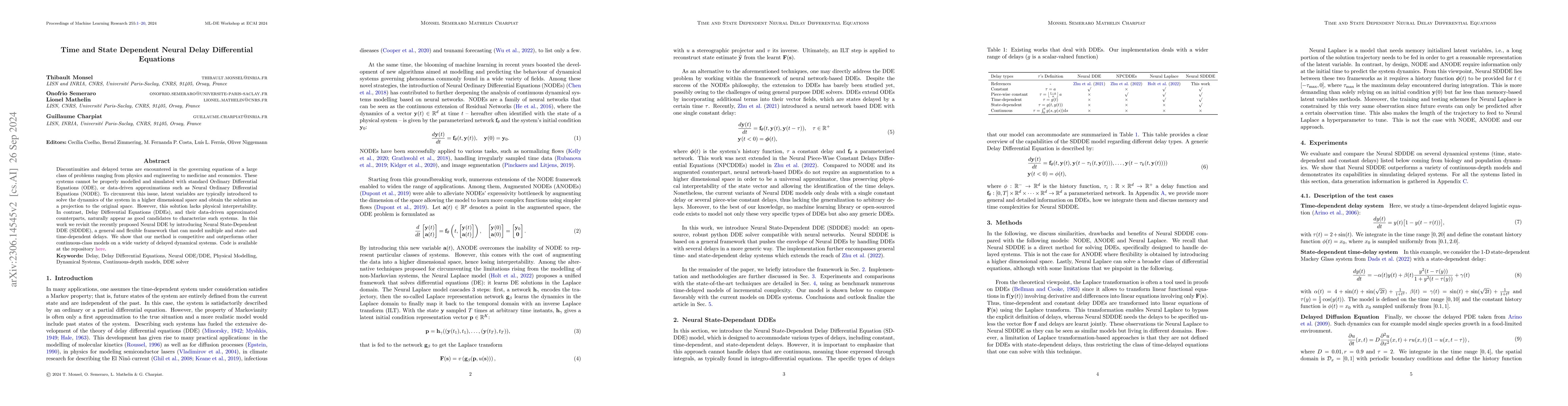 Discontinuities and delayed terms are encountered in the governing equations of a large class of problems ranging from physics, engineering, medicine to economics. These systems are impossible to be properly modelled and simulated with standard Ordinary Differential Equations (ODE), or any data-driven approximation including Neural Ordinary Differential Equations (NODE). To circumvent this issue, latent variables are typically introduced to solve the dynamics of the system in a higher dimensional space and obtain the solution as a projection to the original space. However, this solution lacks physical interpretability. In contrast, Delay Differential Equations (DDEs) and their data-driven, approximated counterparts naturally appear as good candidates to characterize such complicated systems. In this work we revisit the recently proposed Neural DDE by introducing Neural State-Dependent DDE (SDDDE), a general and flexible framework featuring multiple and state-dependent delays. The developed framework is auto-differentiable and runs efficiently on multiple backends. We show that our method is competitive and outperforms other continuous-class models on a wide variety of delayed dynamical systems.