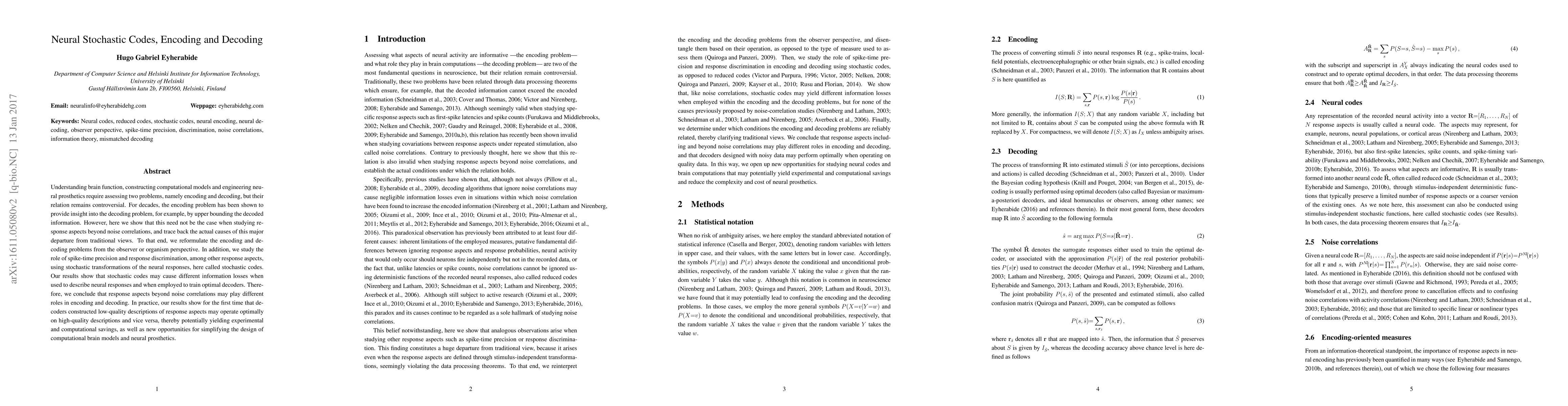 Understanding brain function, constructing computational models and engineering neural prosthetics require assessing two problems, namely encoding and decoding, but their relation remains controversial. For decades, the encoding problem has been shown to provide insight into the decoding problem, for example, by upper bounding the decoded information. However, here we show that this need not be the case when studying response aspects beyond noise correlations, and trace back the actual causes of this major departure from traditional views. To that end, we reformulate the encoding and decoding problems from the observer or organism perspective. In addition, we study the role of spike-time precision and response discrimination, among other response aspects, using stochastic transformations of the neural responses, here called stochastic codes. Our results show that stochastic codes may cause different information losses when used to describe neural responses and when employed to train optimal decoders. Therefore, we conclude that response aspects beyond noise correlations may play different roles in encoding and decoding. In practice, our results show for the first time that decoders constructed low-quality descriptions of response aspects may operate optimally on high-quality descriptions and vice versa, thereby potentially yielding experimental and computational savings, as well as new opportunities for simplifying the design of computational brain models and neural prosthetics.