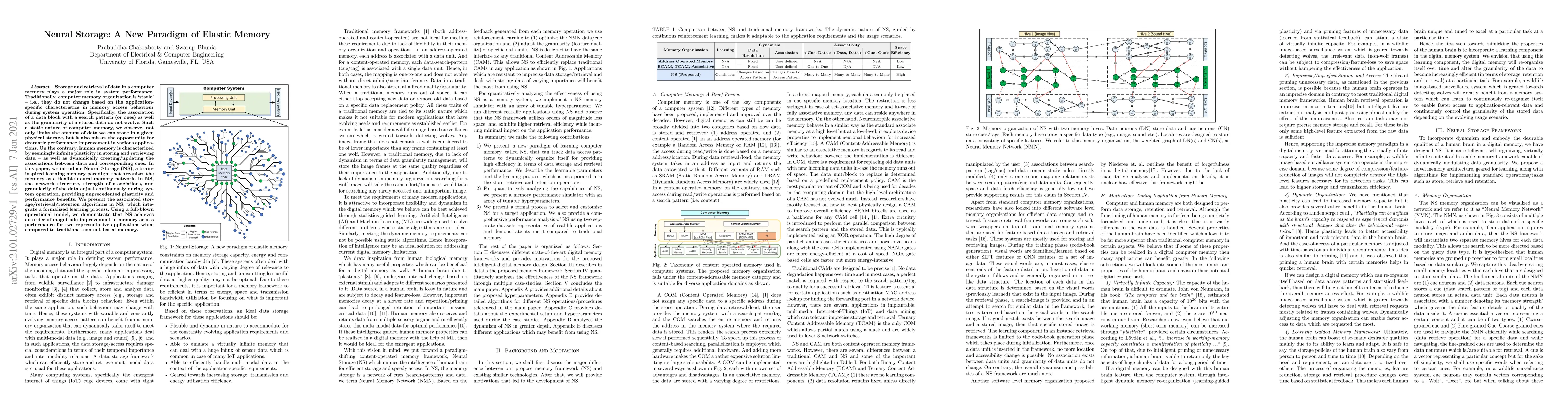 This paper introduces Neural Storage (NS), a brain-inspired memory paradigm that dynamically adjusts memory structure and associations during operation, achieving significant performance improvements over traditional static memory systems. NS demonstrates an order of magnitude better memory access performance for selected applications.