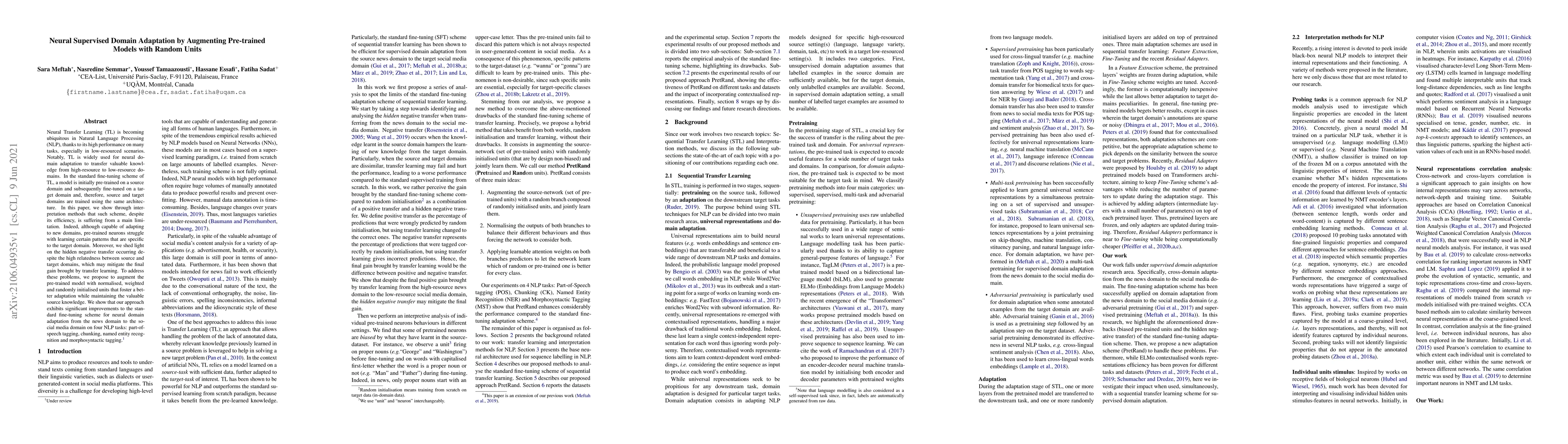 This paper proposes augmenting pre-trained neural models with random units to improve domain adaptation for NLP tasks, addressing limitations in standard fine-tuning. The approach shows significant improvements over traditional methods in adapting from the news to social media domains across several NLP tasks.
