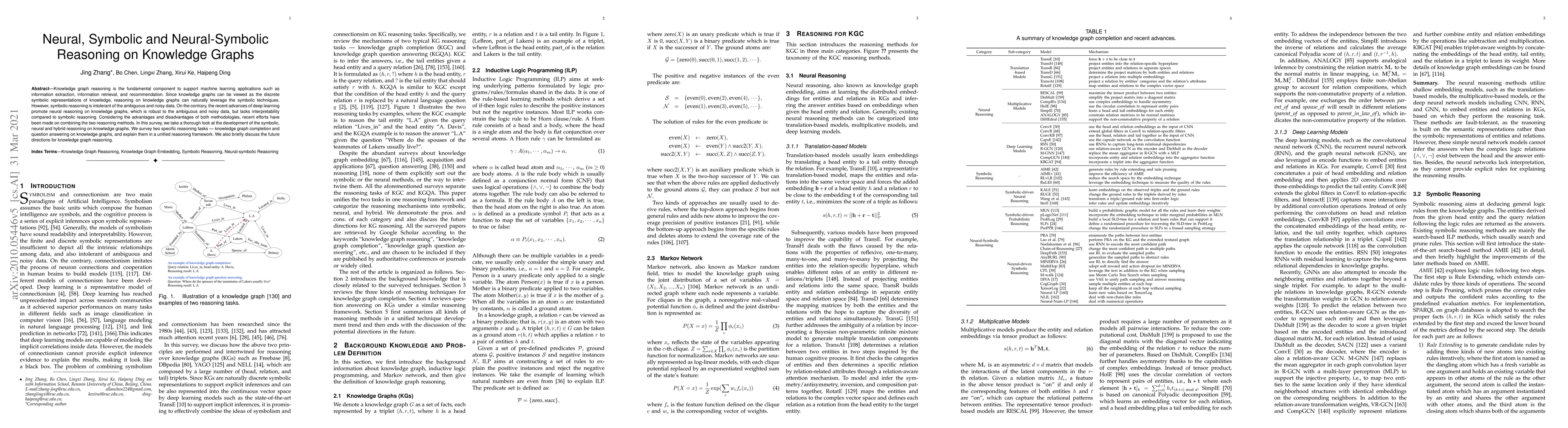 This paper surveys advancements in reasoning methods for knowledge graphs, comparing symbolic, neural, and hybrid approaches. It focuses on knowledge graph completion and question answering, highlighting the strengths and weaknesses of each method and discussing future directions for combining symbolic and neural techniques.