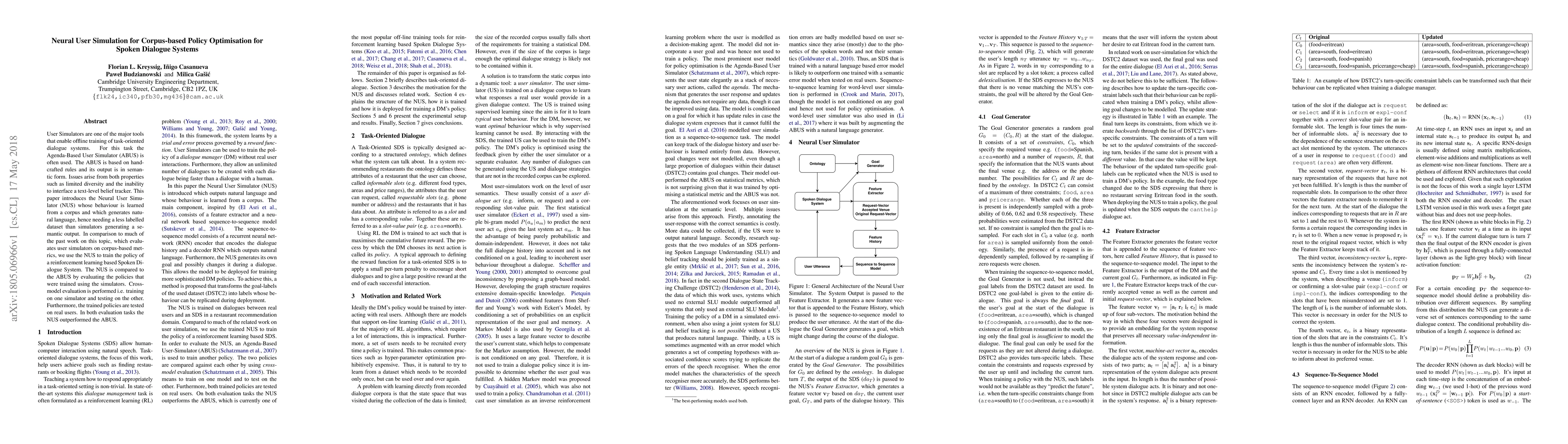 This paper introduces a Neural User Simulator (NUS) trained on a corpus to generate natural language, contrasting with the rule-based Agenda-Based User Simulator (ABUS). The NUS outperforms the ABUS in training and testing policies for a reinforcement learning-based Spoken Dialogue System, as shown through cross-model and real user evaluations.