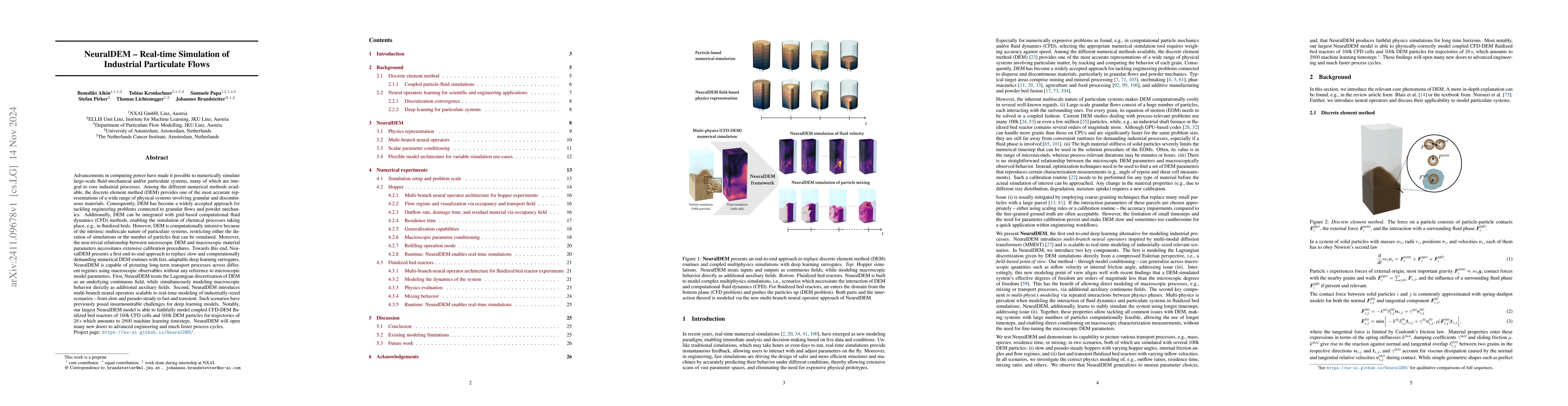NeuralDEM employs deep learning to replace traditional discrete element method (DEM) simulations, offering scalable, real-time modeling of large-scale industrial particulate flows. It enables accurate long-term transport simulations without reliance on microscopic model parameters, facilitating faster and more efficient engineering processes.