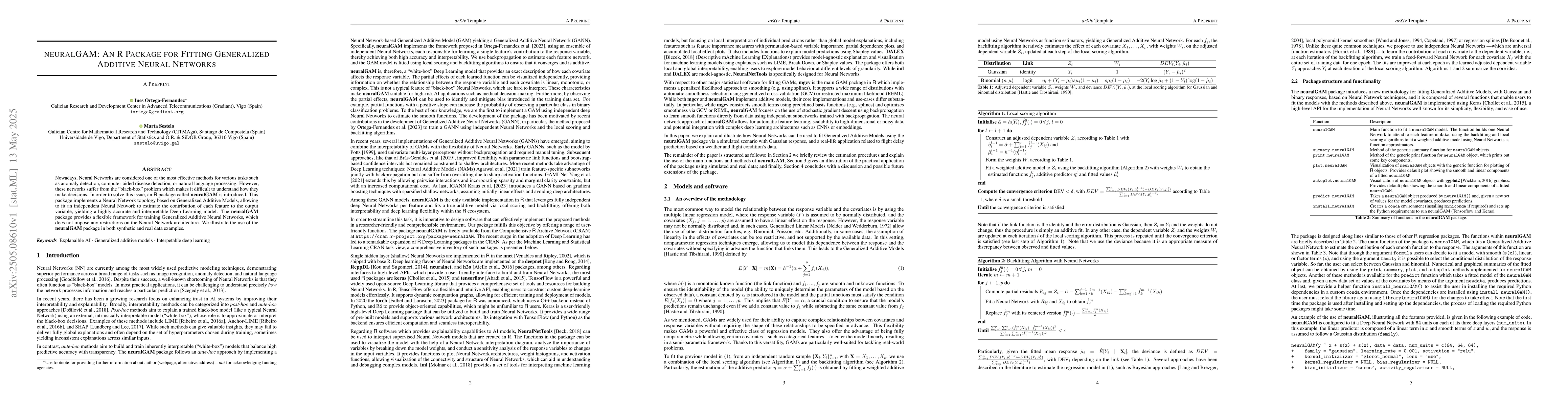 The novelty of this work lies in combining the strengths of Generalized Additive Models and Neural Networks within a single, flexible R package, neuralGAM, to produce models that are both accurate and interpretable.