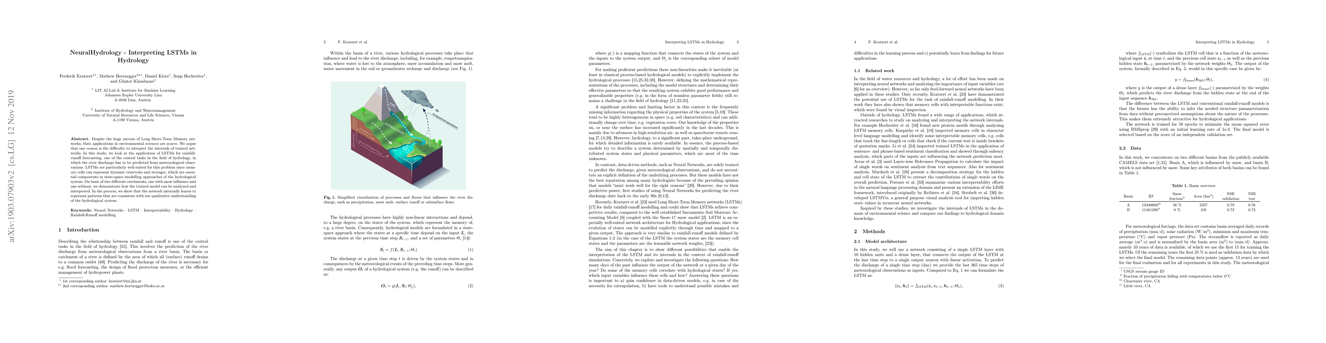 Despite the huge success of Long Short-Term Memory networks, their applications in environmental sciences are scarce. We argue that one reason is the difficulty to interpret the internals of trained networks. In this study, we look at the application of LSTMs for rainfall-runoff forecasting, one of the central tasks in the field of hydrology, in which the river discharge has to be predicted from meteorological observations. LSTMs are particularly well-suited for this problem since memory cells can represent dynamic reservoirs and storages, which are essential components in state-space modelling approaches of the hydrological system. On basis of two different catchments, one with snow influence and one without, we demonstrate how the trained model can be analyzed and interpreted. In the process, we show that the network internally learns to represent patterns that are consistent with our qualitative understanding of the hydrological system.