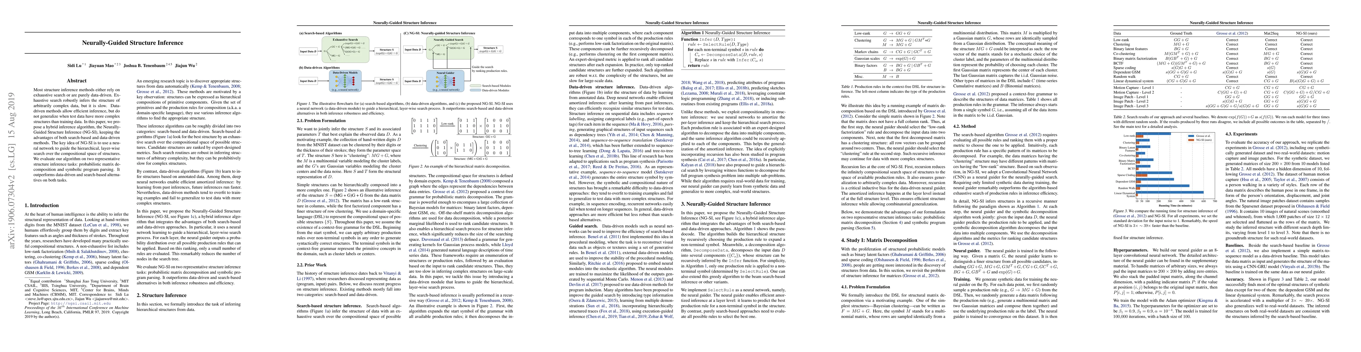 This paper introduces Neurally-Guided Structure Inference (NG-SI), a hybrid algorithm that combines the robustness of exhaustive search with the efficiency of data-driven methods, using a neural network to guide a hierarchical search over compositional structures. The NG-SI algorithm outperforms both search-based and data-driven alternatives in tasks like probabilistic matrix decomposition and symbolic program parsing.