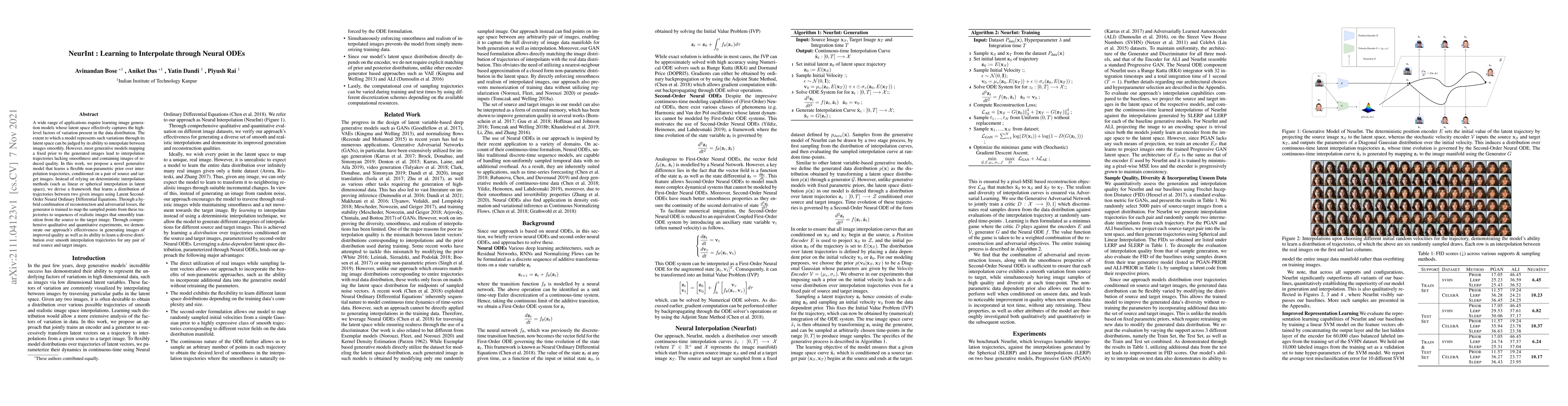 A wide range of applications require learning image generation models whose latent space effectively captures the high-level factors of variation present in the data distribution. The extent to which a model represents such variations through its latent space can be judged by its ability to interpolate between images smoothly. However, most generative models mapping a fixed prior to the generated images lead to interpolation trajectories lacking smoothness and containing images of reduced quality. In this work, we propose a novel generative model that learns a flexible non-parametric prior over interpolation trajectories, conditioned on a pair of source and target images. Instead of relying on deterministic interpolation methods (such as linear or spherical interpolation in latent space), we devise a framework that learns a distribution of trajectories between two given images using Latent Second-Order Neural Ordinary Differential Equations. Through a hybrid combination of reconstruction and adversarial losses, the generator is trained to map the sampled points from these trajectories to sequences of realistic images that smoothly transition from the source to the target image. Through comprehensive qualitative and quantitative experiments, we demonstrate our approach's effectiveness in generating images of improved quality as well as its ability to learn a diverse distribution over smooth interpolation trajectories for any pair of real source and target images.