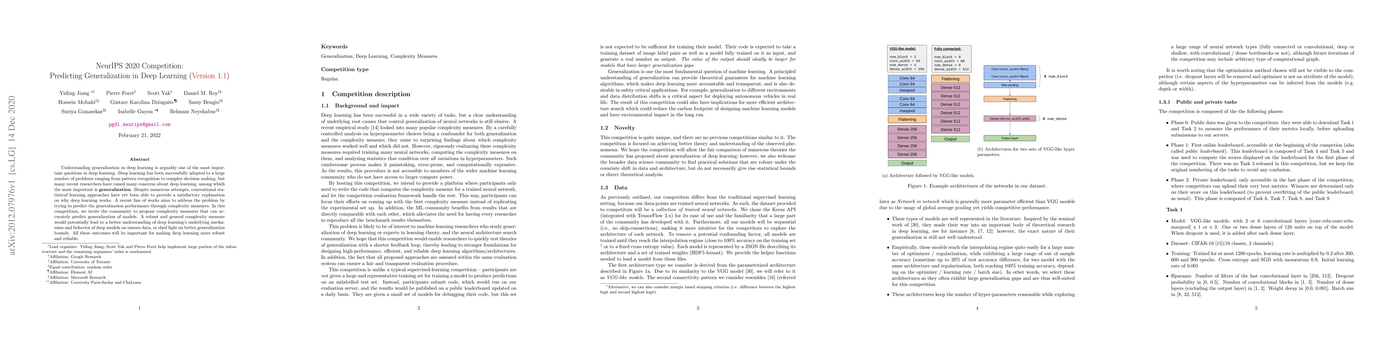 A competition was held to find a complexity measure that can accurately predict generalization in deep learning models. The goal is to better understand deep learning's underlying mechanism and behavior.