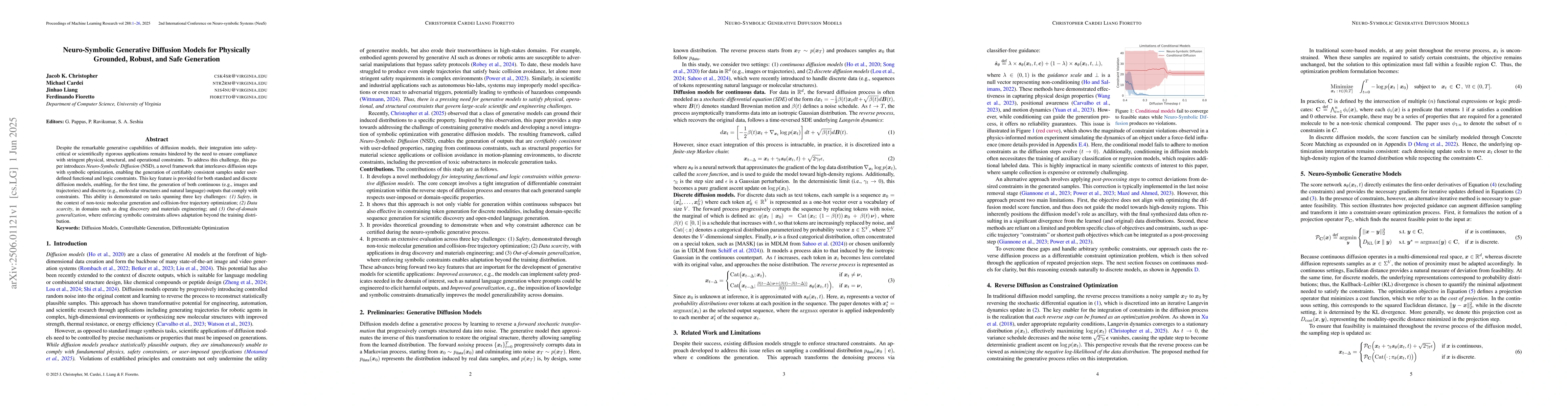 This paper introduces Neuro-Symbolic Diffusion (NSD), a novel framework that interleaves diffusion steps with symbolic optimization, ensuring compliance with user-defined constraints for both continuous and discrete outputs.
