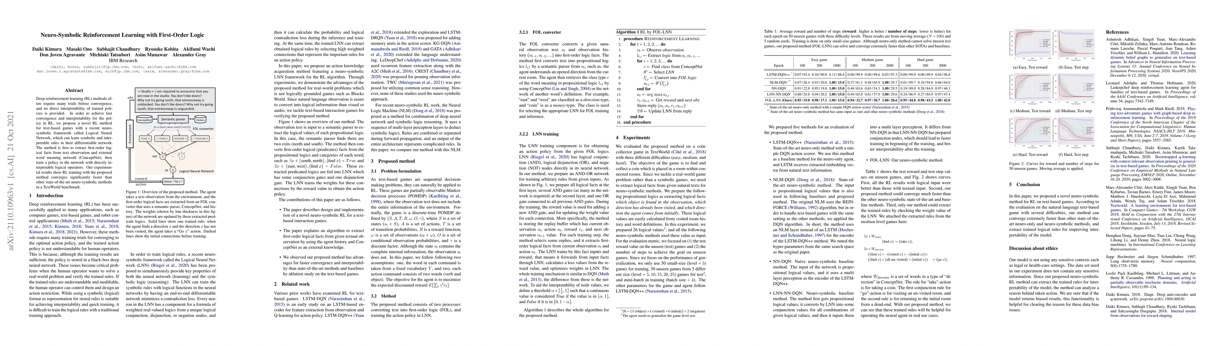 This paper proposes a neuro-symbolic RL method using Logical Neural Networks to learn interpretable rules for text-based games, leveraging first-order logic extracted from text observations and ConceptNet. The method demonstrates faster convergence compared to other neuro-symbolic methods in TextWorld benchmarks.