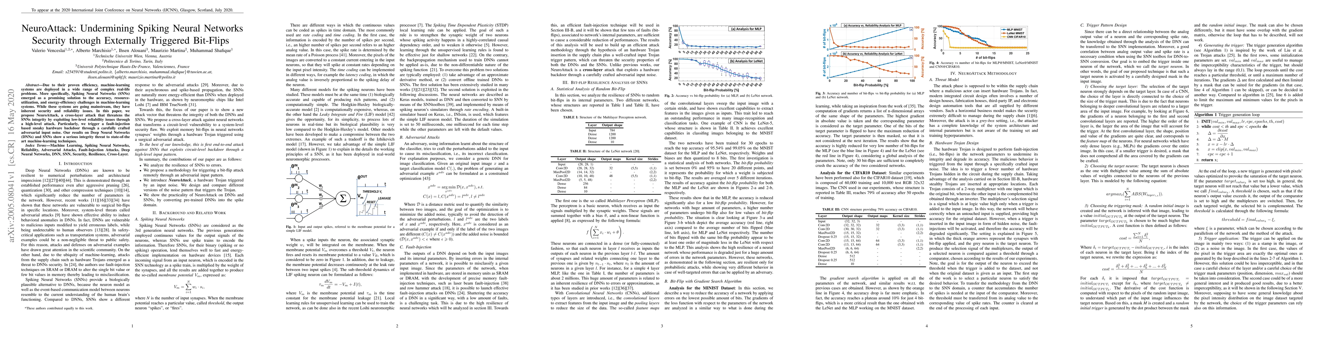 Researchers discovered a new security threat to Spiking Neural Networks (SNNs), called NeuroAttack, which can trigger bit-flips in SNNs using adversarial input noise. This attack poses a serious integrity risk to state-of-the-art machine-learning techniques.