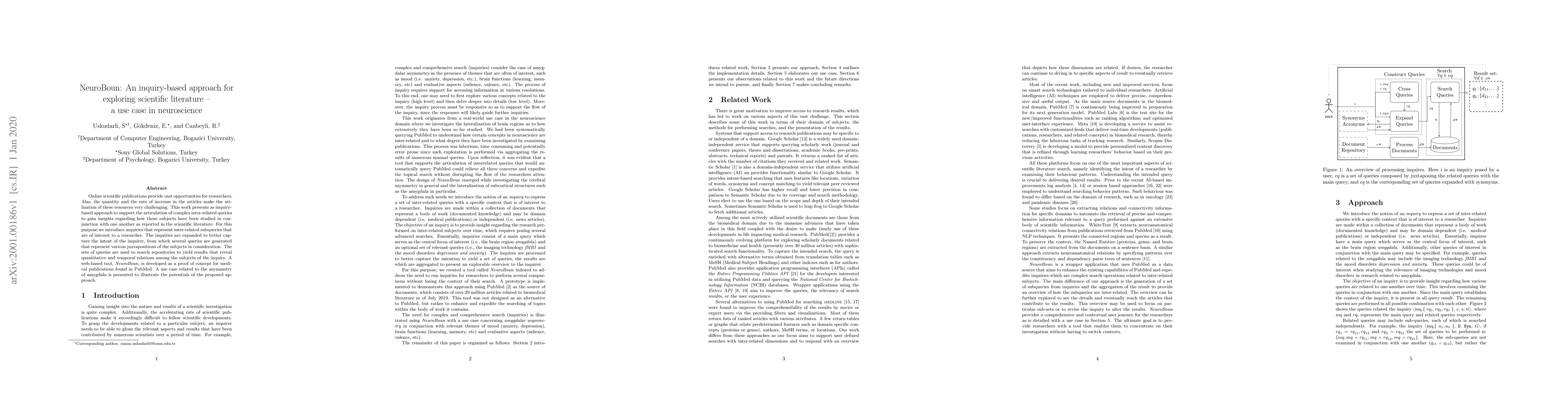 Online scientific publications provide vast opportunities for researchers. Alas, the quantity and the rate of increase in the articles make the utilization of these resources very challenging. This work presents as inquiry-based approach to support the articulation of complex inter-related queries to gain insights regarding how these subjects have been studied in conjunction with one another as reported in the scientific literature. For this purpose we introduce inquiries that represent inter-related subqueries that are of interest to a researcher. The inquiries are expanded to better capture the intent of the inquirer, from which several queries are generated that represent various juxtapositions of the subjects in consideration. The sets of queries are used to search repositories to yield results that reveal quantitative and temporal relations among the subjects of the inquiry. A web-based tool, NeuroBoun, is developed as a proof of concept for medical publications found in PubMed. A use case related to the asymmetry of amygdala is presented to illustrate the potentials of the proposed approach.