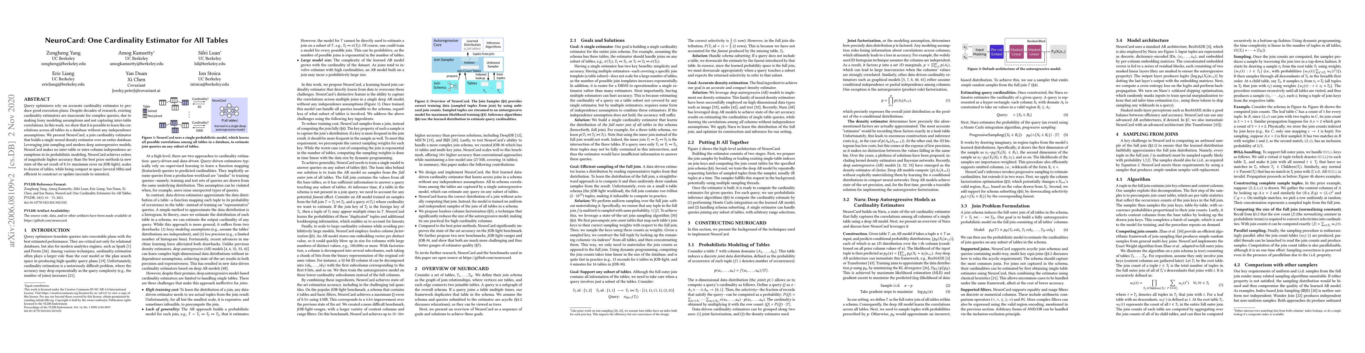 NeuroCard introduces a novel neural density estimator for join cardinality estimation that accurately models inter-table correlations without independence assumptions, achieving state-of-the-art accuracy and scalability for complex queries.