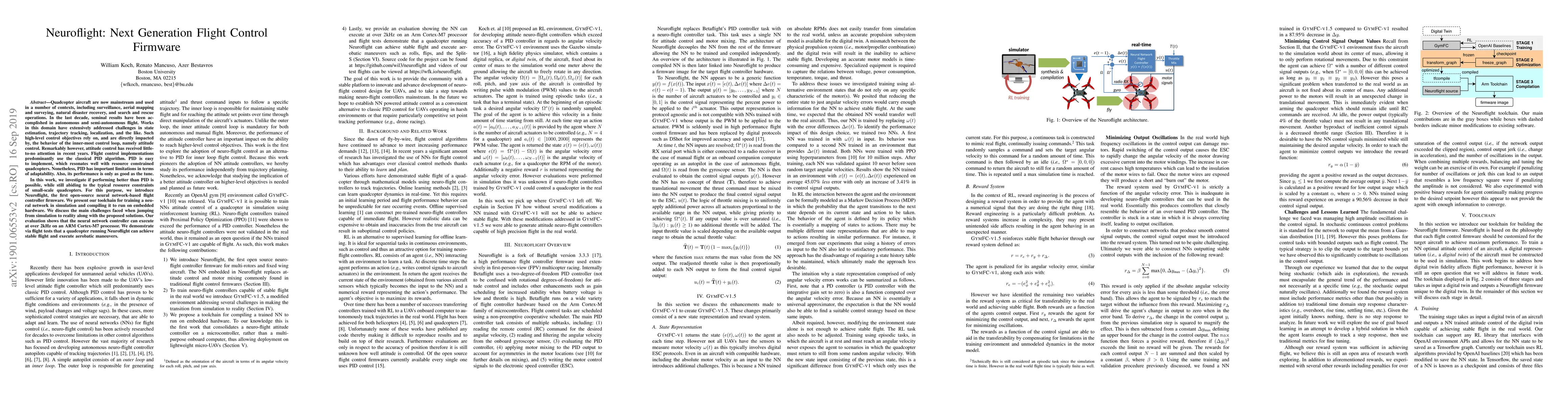 Neuroflight introduces a novel open-source neuro-flight controller firmware for uncrewed aerial vehicles, replacing traditional PID controllers with a neural network trained in simulation and optimized for embedded hardware. Flight tests confirm its capability for stable flight and aerobatic maneuvers.