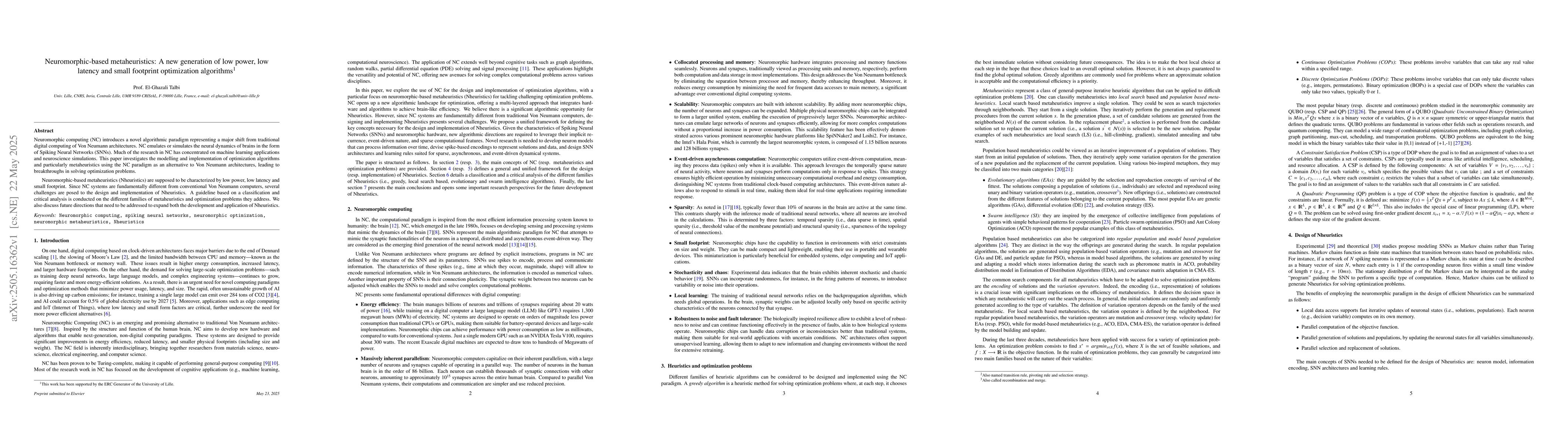 The paper conducts a classification and critical analysis of different families of metaheuristics implemented using the neuromorphic computing paradigm.