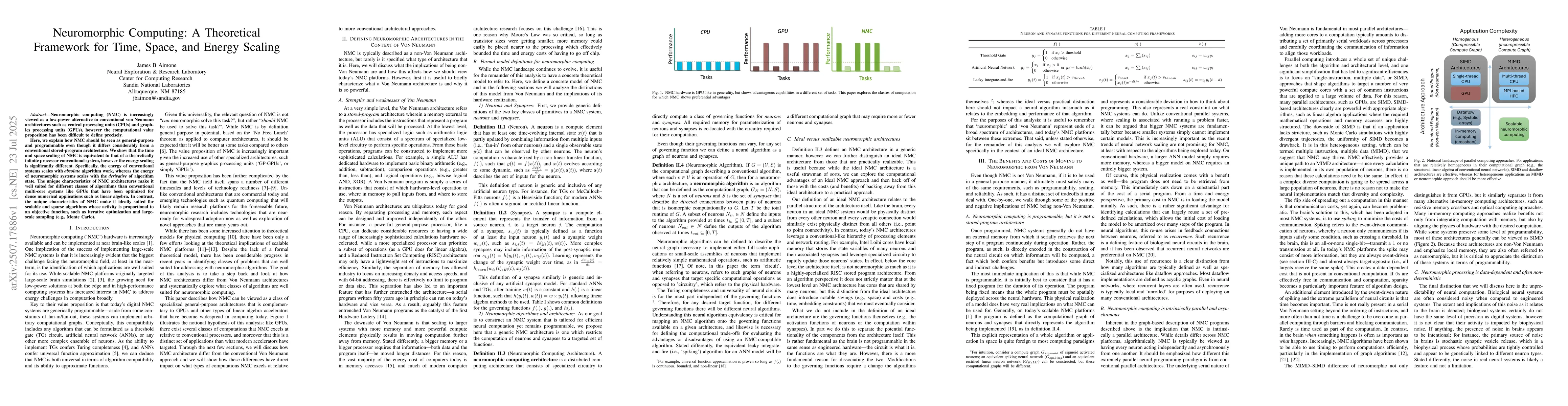 Neuromorphic computing (NMC) is increasingly viewed as a low-power alternative to conventional von Neumann architectures such as central processing units (CPUs) and graphics processing units (GPUs), however the computational value proposition has been difficult to define precisely. Here, we explain how NMC should be seen as general-purpose and programmable even though it differs considerably from a conventional stored-program architecture. We show that the time and space scaling of NMC is equivalent to that of a theoretically infinite processor conventional system, however the energy scaling is significantly different. Specifically, the energy of conventional systems scales with absolute algorithm work, whereas the energy of neuromorphic systems scales with the derivative of algorithm state. The unique characteristics of NMC architectures make it well suited for different classes of algorithms than conventional multi-core systems like GPUs that have been optimized for dense numerical applications such as linear algebra. In contrast, the unique characteristics of NMC make it ideally suited for scalable and sparse algorithms whose activity is proportional to an objective function, such as iterative optimization and large-scale sampling (e.g., Monte Carlo).