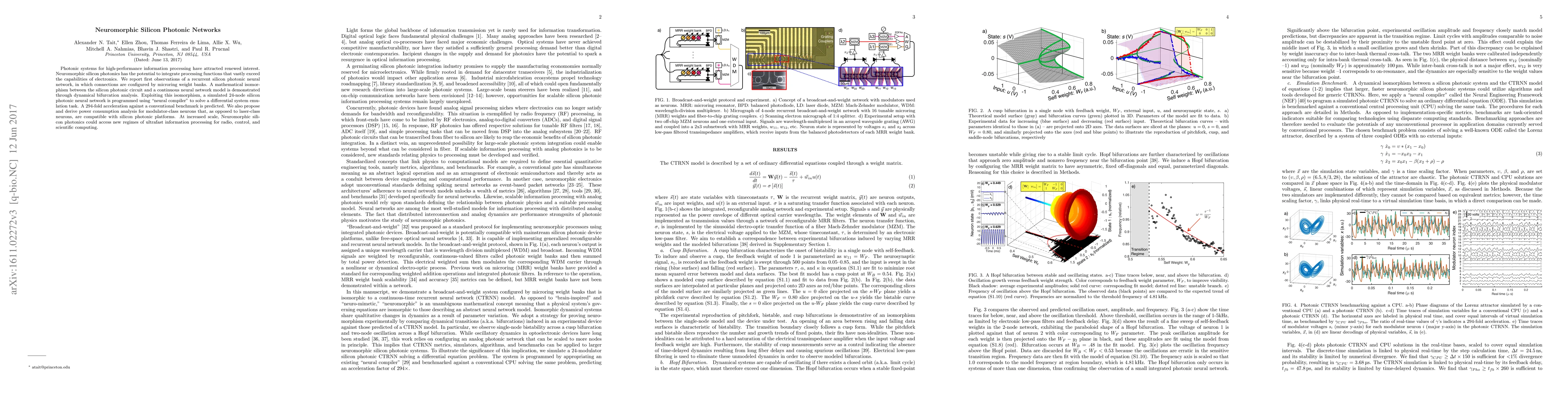 This paper reports on the development of a recurrent silicon photonic neural network, demonstrating a mathematical isomorphism between the network and a continuous neural model. The study predicts a 294-fold acceleration over conventional benchmarks and proposes power consumption analysis for scalable silicon photonic neuromorphic systems.