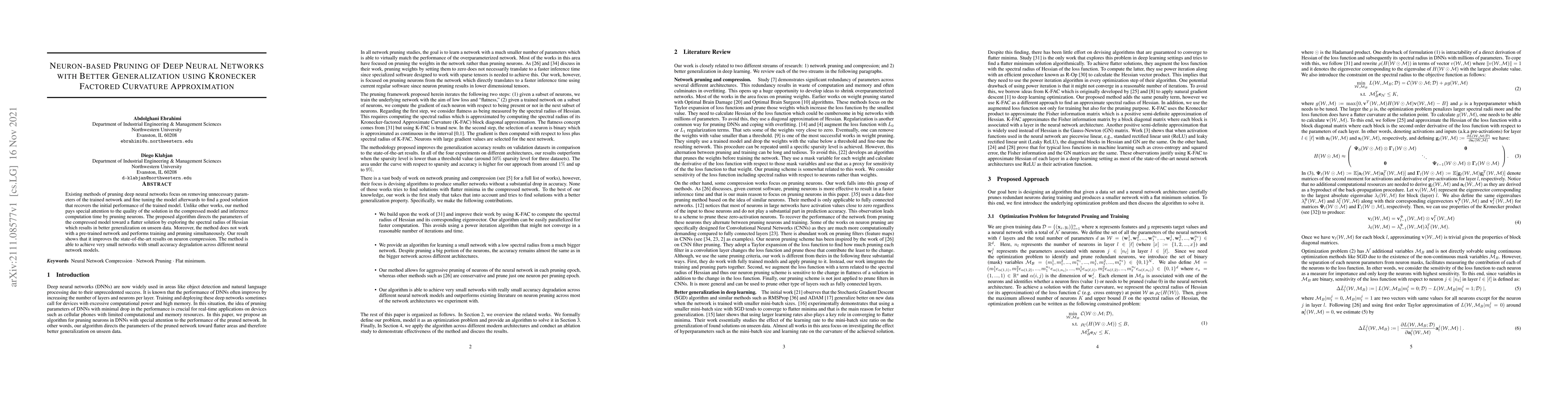 This paper proposes a neuron-based pruning method for deep neural networks that trains and prunes simultaneously, focusing on achieving flatter solutions via Kronecker Factored Curvature Approximation. The method demonstrates superior generalization and smaller network sizes with minimal accuracy loss compared to existing techniques.
