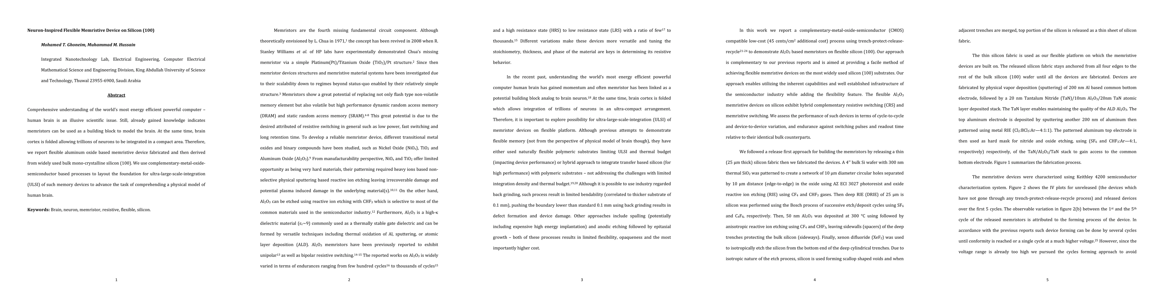 A facile CMOS compatible low-cost fabrication process for building flexible memristive devices on ultra-thin silicon fabric released from bulk mono-crystalline silicon (100).