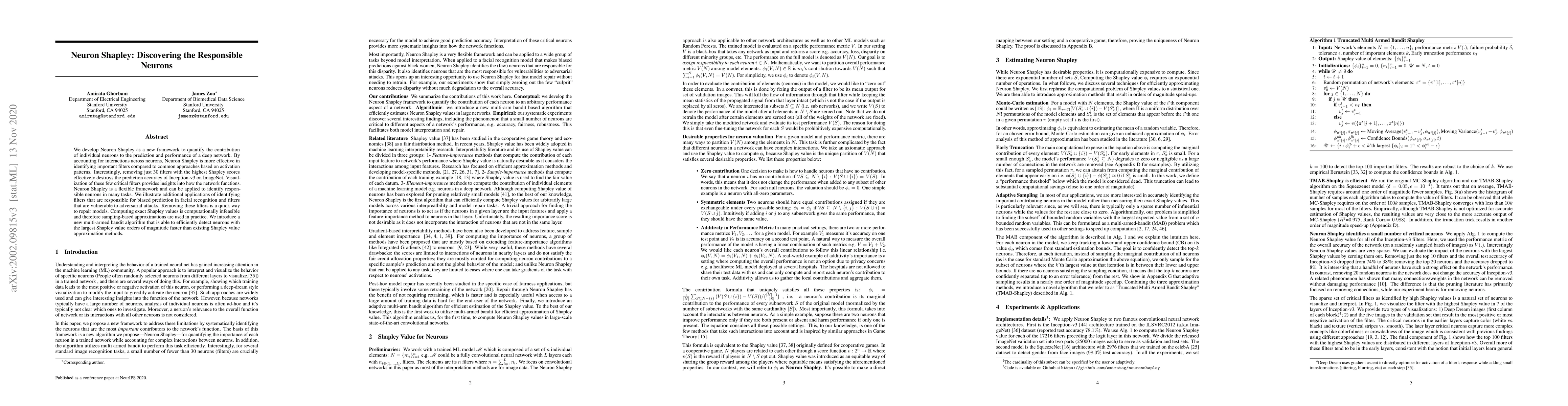 Researchers developed Neuron Shapley to quantify neuron contributions in deep networks, finding that removing just 30 critical filters can destroy prediction accuracy in ImageNet.