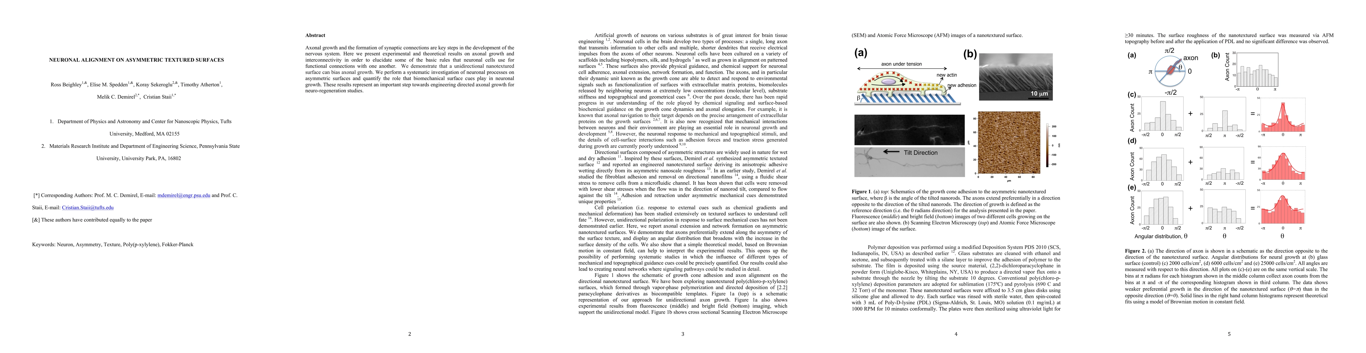 Axonal growth and the formation of synaptic connections are key steps in the development of the nervous system. Here we present experimental and theoretical results on axonal growth and interconnectivity in order to elucidate some of the basic rules that neuronal cells use for functional connections with one another. We demonstrate that a unidirectional nanotextured surface can bias axonal growth. We perform a systematic investigation of neuronal processes on asymmetric surfaces and quantify the role that biomechanical surface cues play in neuronal growth. These results represent an important step towards engineering directed axonal growth for neuro-regeneration studies.