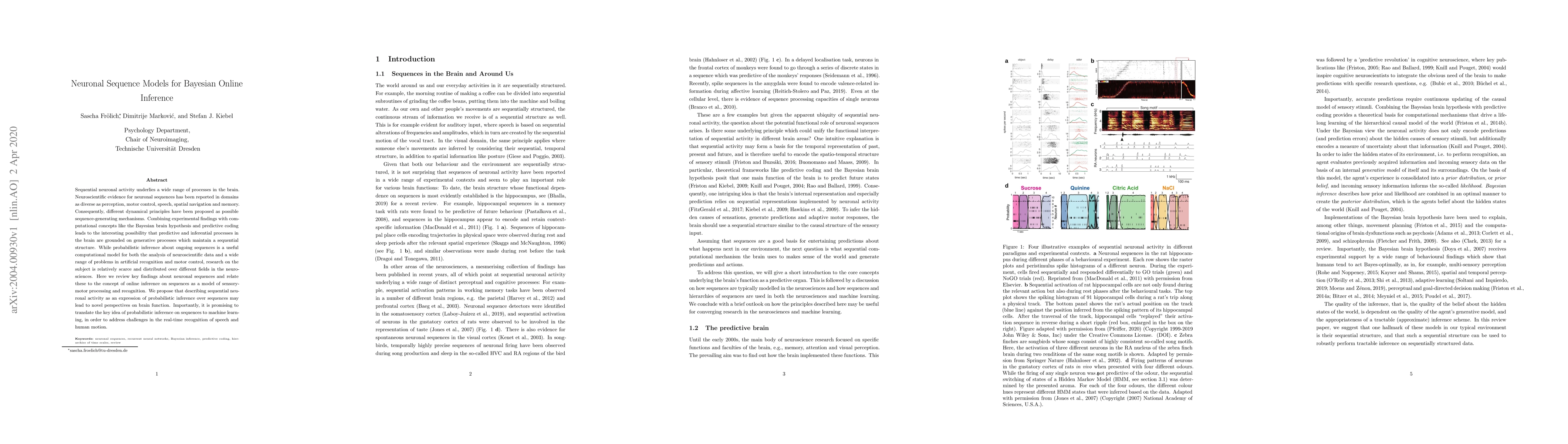 This paper reviews neuronal sequences in the brain and proposes that they reflect probabilistic inference processes. It suggests that modeling these sequences using Bayesian online inference could provide new insights into sensory-motor processing and real-time recognition in both neuroscience and machine learning.