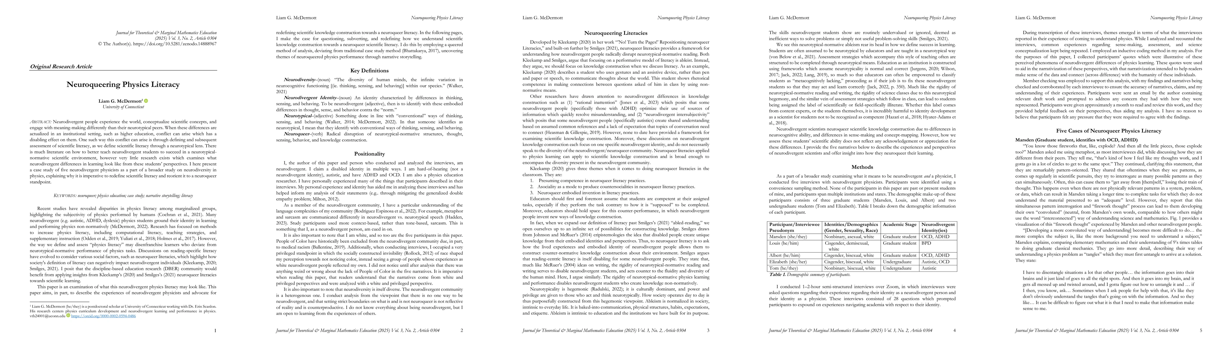 Neurodivergent people experience the world, conceptualize scientific concepts, and engage with meaning-making differently than their neurotypical peers. When these differences are actualized in an institutional setting, such as higher education, conflict can arise which has a disabling effect on them. One such way this conflict can arise is through defining and subsequent assessment of scientific literacy, as we define scientific literacy through a neurotypical lens. There is much literature on how to better teach neurodivergent students to succeed in a neurotypical-normative scientific environment, however very little research exists which examines what neurodivergent differences in learning look like from these students' perspectives. I here present a case study of five neurodivergent physicists as a part of a broader study on neurodiversity in physics, explaining why it is imperative to redefine scientific literacy and reorient it to a Neuroqueer standpoint.