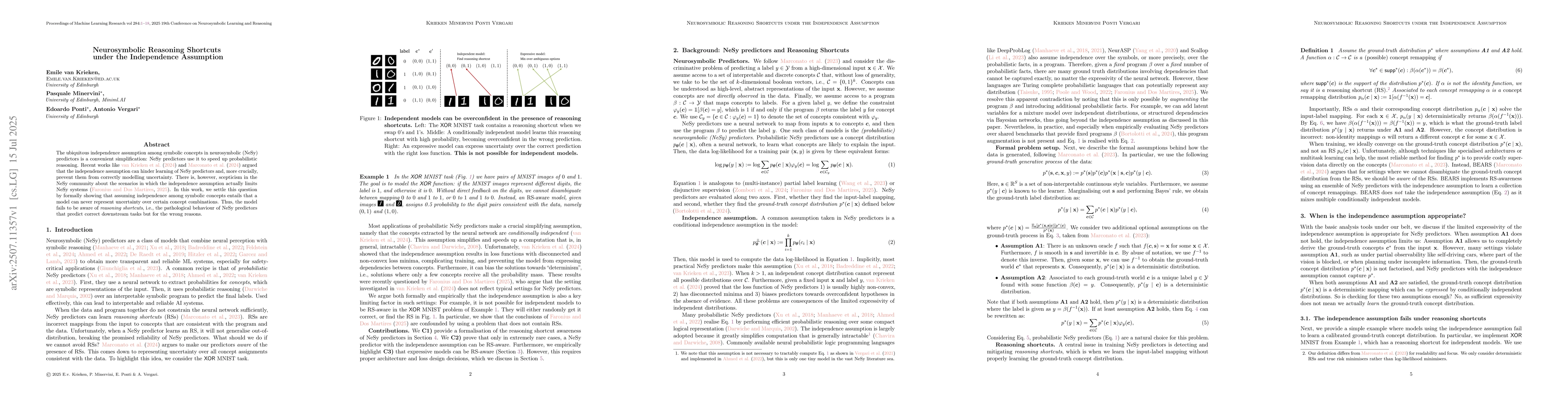 The ubiquitous independence assumption among symbolic concepts in neurosymbolic (NeSy) predictors is a convenient simplification: NeSy predictors use it to speed up probabilistic reasoning. Recent works like van Krieken et al. (2024) and Marconato et al. (2024) argued that the independence assumption can hinder learning of NeSy predictors and, more crucially, prevent them from correctly modelling uncertainty. There is, however, scepticism in the NeSy community around the scenarios in which the independence assumption actually limits NeSy systems (Faronius and Dos Martires, 2025). In this work, we settle this question by formally showing that assuming independence among symbolic concepts entails that a model can never represent uncertainty over certain concept combinations. Thus, the model fails to be aware of reasoning shortcuts, i.e., the pathological behaviour of NeSy predictors that predict correct downstream tasks but for the wrong reasons.