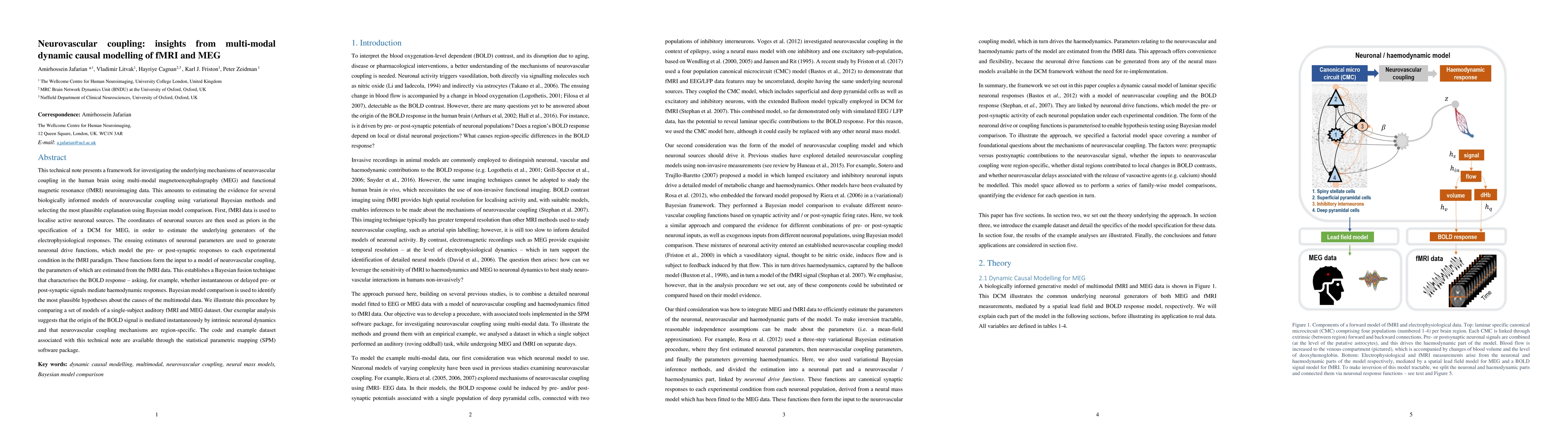 This technical note presents a framework for investigating the underlying mechanisms of neurovascular coupling in the human brain using multi-modal magnetoencephalography (MEG) and functional magnetic resonance (fMRI) neuroimaging data. This amounts to estimating the evidence for several biologically informed models of neurovascular coupling using variational Bayesian methods and selecting the most plausible explanation using Bayesian model comparison. First, fMRI data is used to localise active neuronal sources. The coordinates of neuronal sources are then used as priors in the specification of a DCM for MEG, in order to estimate the underlying generators of the electrophysiological responses. The ensuing estimates of neuronal parameters are used to generate neuronal drive functions, which model the pre or post synaptic responses to each experimental condition in the fMRI paradigm. These functions form the input to a model of neurovascular coupling, the parameters of which are estimated from the fMRI data. This establishes a Bayesian fusion technique that characterises the BOLD response - asking, for example, whether instantaneous or delayed pre or post synaptic signals mediate haemodynamic responses. Bayesian model comparison is used to identify the most plausible hypotheses about the causes of the multimodal data. We illustrate this procedure by comparing a set of models of a single-subject auditory fMRI and MEG dataset. Our exemplar analysis suggests that the origin of the BOLD signal is mediated instantaneously by intrinsic neuronal dynamics and that neurovascular coupling mechanisms are region-specific. The code and example dataset associated with this technical note are available through the statistical parametric mapping (SPM) software package.
