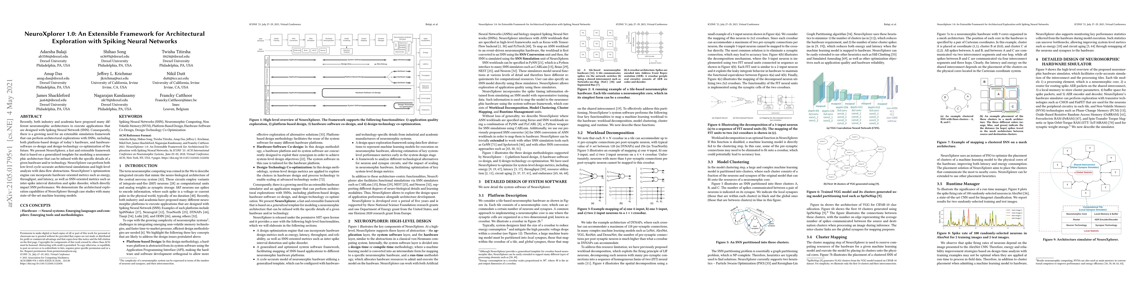 NeuroXplorer 1.0 is an extensible framework for exploring neuromorphic architectures using Spiking Neural Networks (SNNs). It supports both low-level hardware simulations and high-level data-flow abstractions, optimizing for metrics like energy and latency while considering SNN-specific performance metrics.