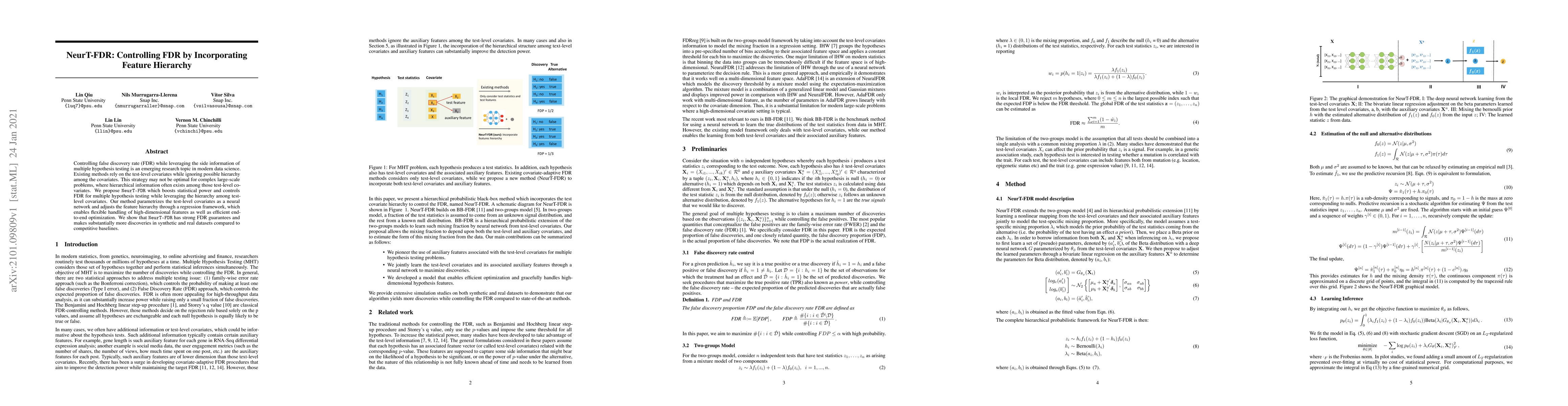 The paper introduces NeurT-FDR, a novel method for controlling the false discovery rate (FDR) in multiple hypothesis testing by incorporating feature hierarchy, which outperforms existing methods by leveraging the neural network-based parameterization of test-level covariates. NeurT-FDR demonstrates strong FDR guarantees and significantly better discovery rates in both synthetic and real datasets.