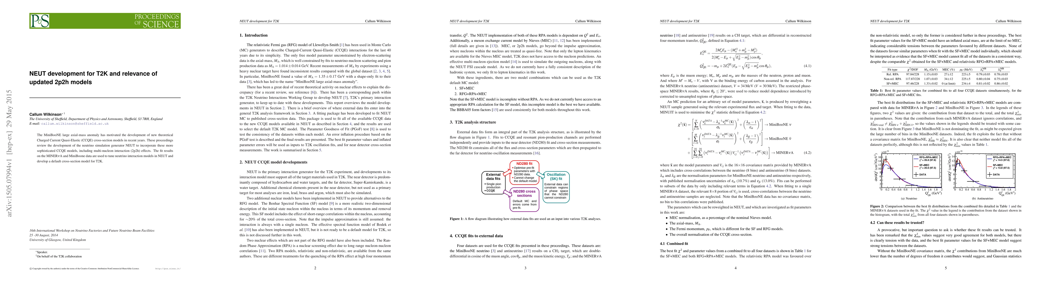 This paper discusses the development of NEUT, a neutrino simulation generator, to incorporate advanced Charged Current Quasi-Elastic (CCQE) models, including multi-nucleon interaction effects. It also highlights the relevance of updated 2p2h models and their tuning based on the MINER$\nu$A and MiniBooNE data to support the T2K experiment.
