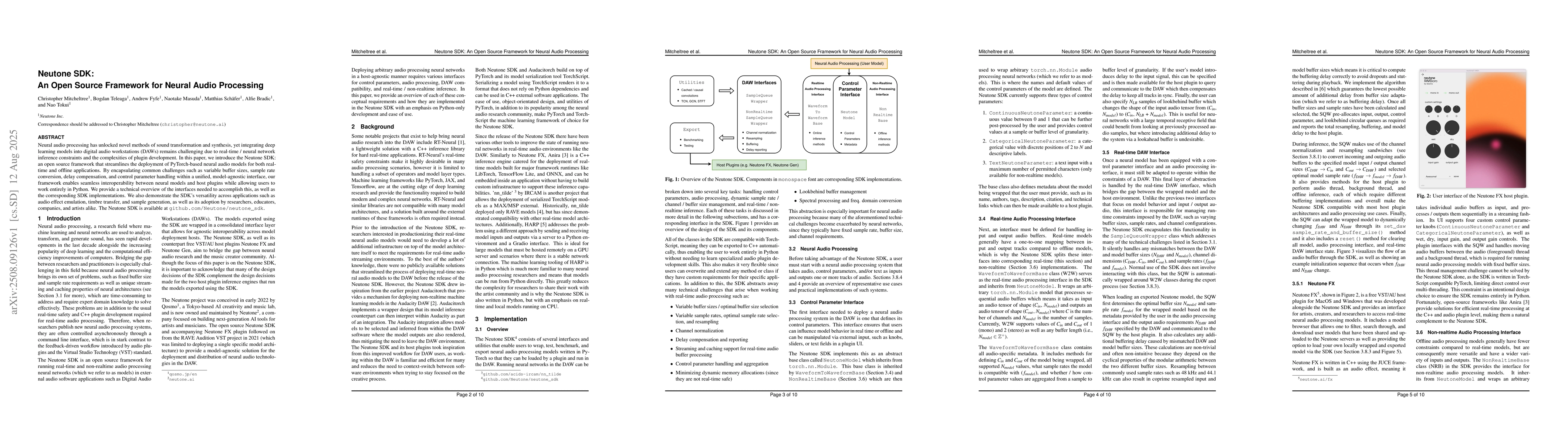 Neural audio processing has unlocked novel methods of sound transformation and synthesis, yet integrating deep learning models into digital audio workstations (DAWs) remains challenging due to real-time / neural network inference constraints and the complexities of plugin development. In this paper, we introduce the Neutone SDK: an open source framework that streamlines the deployment of PyTorch-based neural audio models for both real-time and offline applications. By encapsulating common challenges such as variable buffer sizes, sample rate conversion, delay compensation, and control parameter handling within a unified, model-agnostic interface, our framework enables seamless interoperability between neural models and host plugins while allowing users to work entirely in Python. We provide a technical overview of the interfaces needed to accomplish this, as well as the corresponding SDK implementations. We also demonstrate the SDK's versatility across applications such as audio effect emulation, timbre transfer, and sample generation, as well as its adoption by researchers, educators, companies, and artists alike. The Neutone SDK is available at https://github.com/Neutone/neutone_sdk