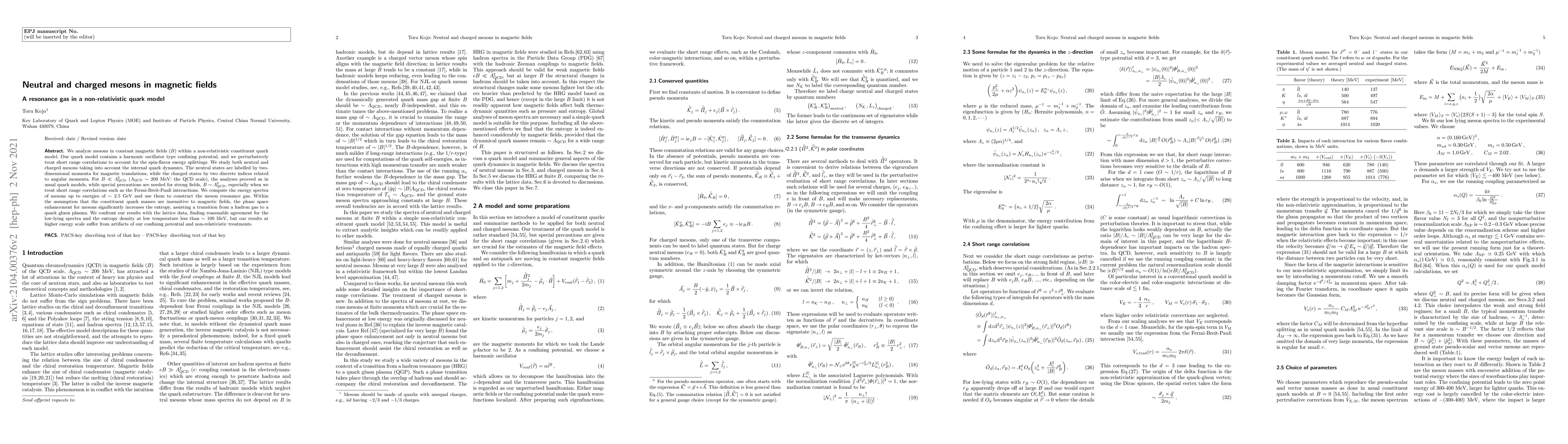This paper investigates mesons in magnetic fields using a non-relativistic quark model, analyzing both neutral and charged mesons under varying field strengths. The study finds that for strong magnetic fields, special treatment is required for accurate results, leading to enhanced meson spectra and entropy, which may facilitate the transition to a quark gluon plasma. Agreement with lattice data is found for low-energy spectra but discrepancies arise at higher energies due to model limitations.