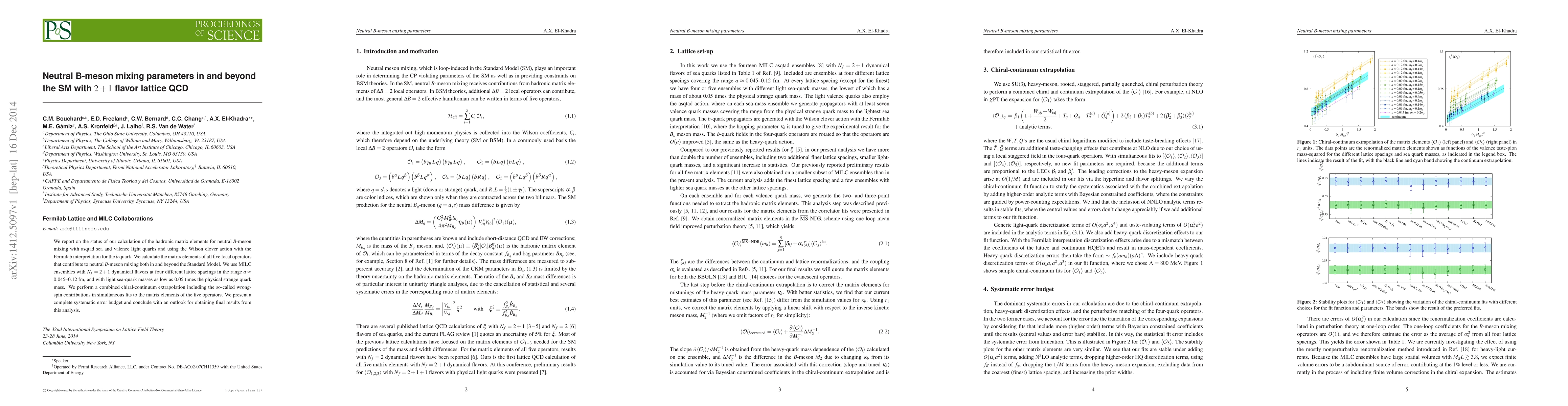 We report on the status of our calculation of the hadronic matrix elements for neutral $B$-meson mixing with asqtad sea and valence light quarks and using the Wilson clover action with the Fermilab interpretation for the $b$ quark. We calculate the matrix elements of all five local operators that contribute to neutral $B$-meson mixing both in and beyond the Standard Model. We use MILC ensembles with $N_f=2+1$ dynamical flavors at four different lattice spacings in the range $a \approx 0.045$--$0.12$~fm, and with light sea-quark masses as low as 0.05 times the physical strange quark mass. We perform a combined chiral-continuum extrapolation including the so-called wrong-spin contributions in simultaneous fits to the matrix elements of the five operators. We present a complete systematic error budget and conclude with an outlook for obtaining final results from this analysis.