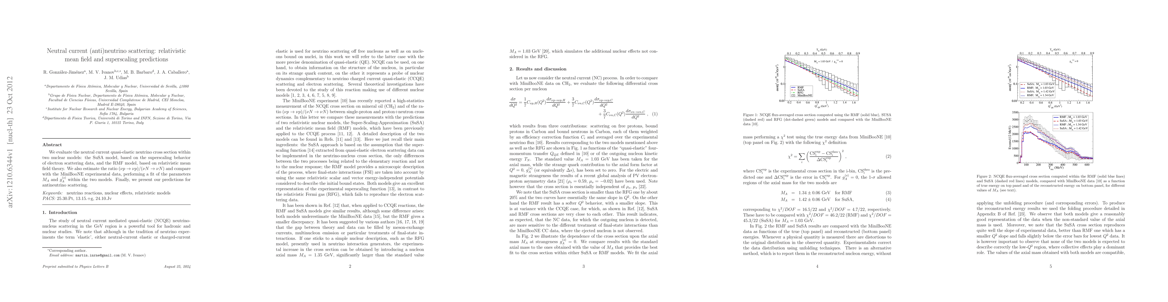 Researchers evaluate two nuclear models to predict neutrino scattering cross sections and compare with experimental data from MiniBooNE, focusing on relativistic mean field and superscaling predictions.
