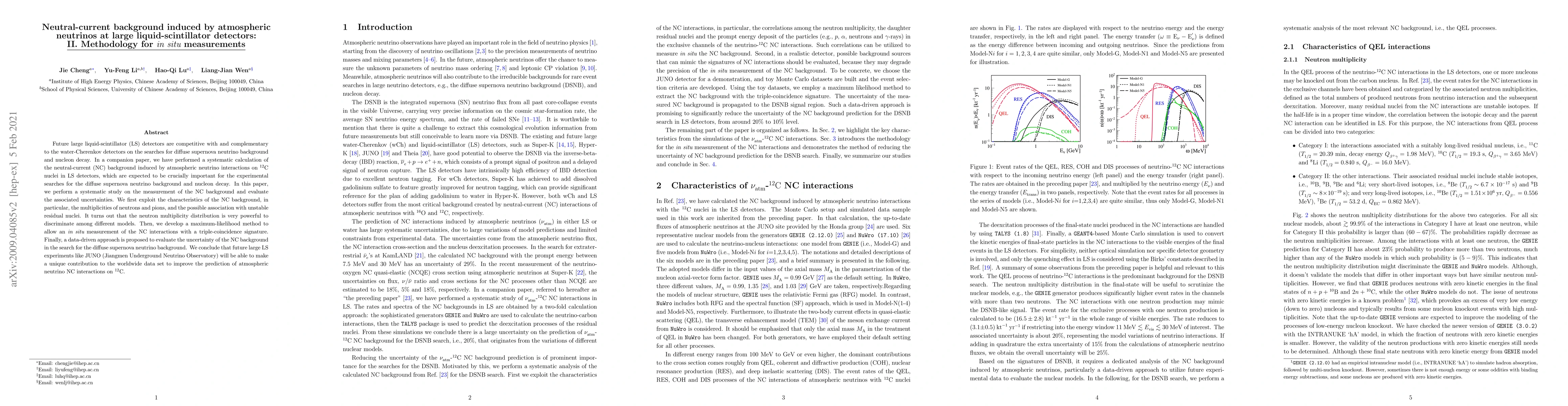 This paper develops a methodology for in situ measurements of neutral-current backgrounds in large liquid-scintillator detectors, leveraging neutron multiplicity distributions and a maximum-likelihood approach for triple-coincidence signatures. The study concludes that future experiments like JUNO will enhance the understanding of atmospheric neutrino interactions on $^{12}$C.