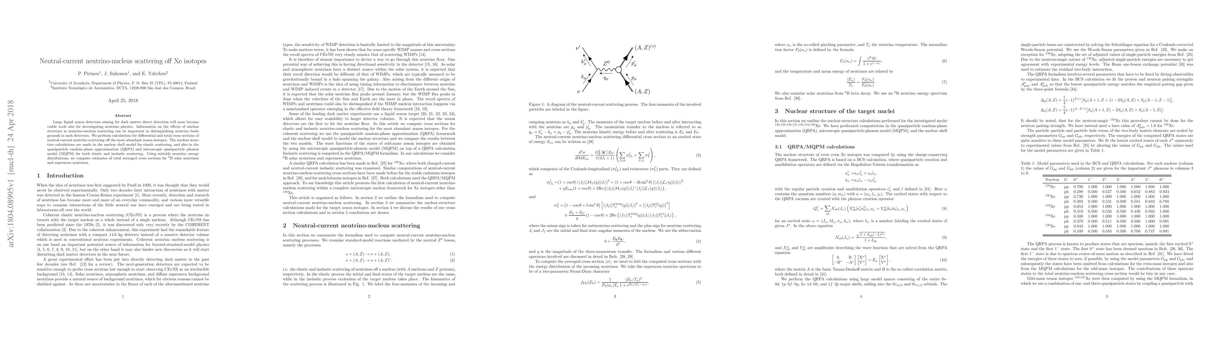 This paper investigates neutral-current neutrino scattering off xenon isotopes, crucial for distinguishing neutrino backgrounds in large liquid xenon detectors used for dark matter detection. It employs nuclear shell model, QRPA, and MQPM calculations to determine differential and total cross sections for both elastic and inelastic scattering processes.