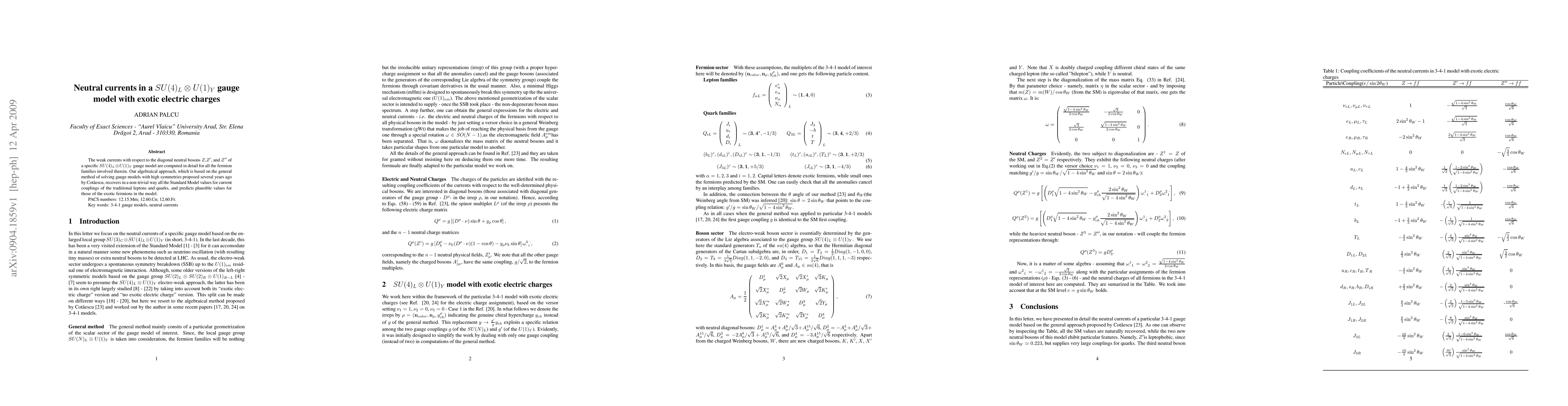 This paper computes the neutral currents in an $SU(4)_{L}\otimes U(1)_{Y}$ gauge model featuring exotic electric charges, using an algebraic approach based on Cot\u{a}escu's method. It recovers Standard Model values for traditional leptons and quarks while predicting plausible values for exotic fermions.