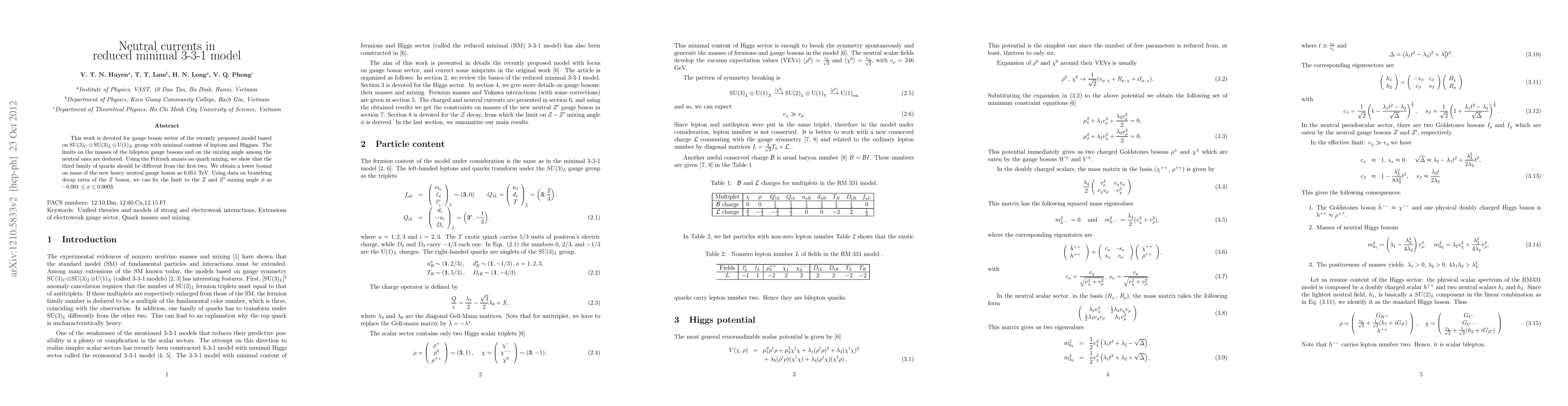 Researchers explored a new physics model with minimal content of leptons and Higgses, finding a lower bound on the mass of a new neutral gauge boson at 6.051 TeV, and establishing limits on mixing angles between the Z and Z' bosons.
