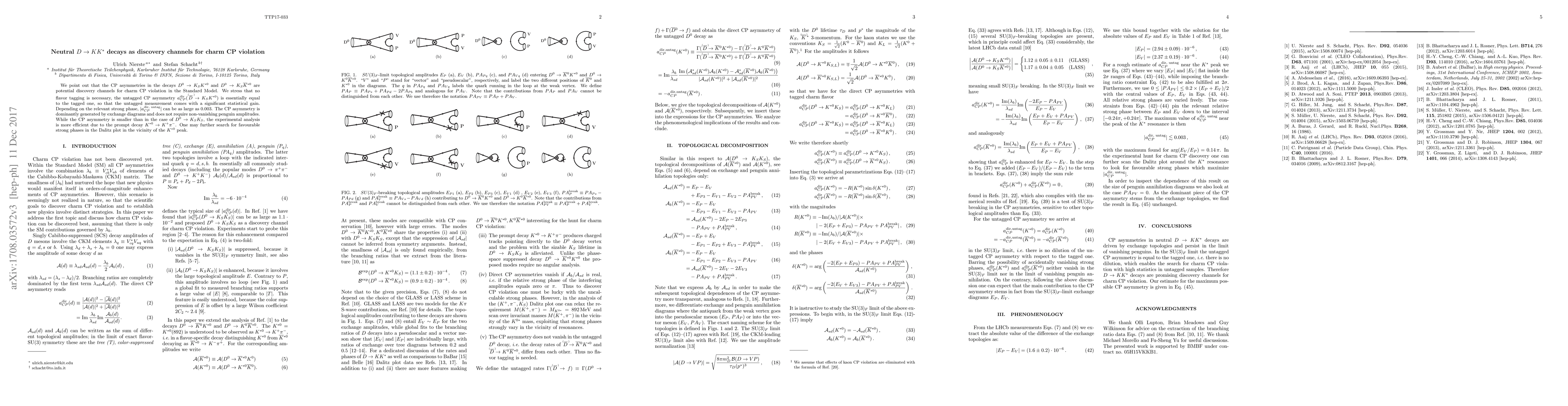 We point out that the CP asymmetries in the decays $D^0\rightarrow K_{S} K^{*0}$ and $D^0\rightarrow K_{S} \overline{K}{}^{*0}$ are potential discovery channels for charm CP violation in the Standard Model. We stress that no flavor tagging is necessary, the untagged CP asymmetry $a_{CP}^{\mathrm{dir}}(D \to K_S K^{*0})$ is essentially equal to the tagged one, so that the untagged measurement comes with a significant statistical gain. Depending on the relevant strong phase, $\vert a_{CP}^{\text{dir, untag}}\vert$ can be as large as $0.003$. The CP asymmetry is dominantly generated by exchange diagrams and does not require non-vanishing penguin amplitudes. While the CP asymmetry is smaller than in the case of $D^0\rightarrow K_SK_S$, the experimental analysis is more efficient due to the prompt decay $K^{*0}\rightarrow K^+\pi^-$. One may further search for favourable strong phases in the Dalitz plot in the vicinity of the $K^{*0}$ peak.